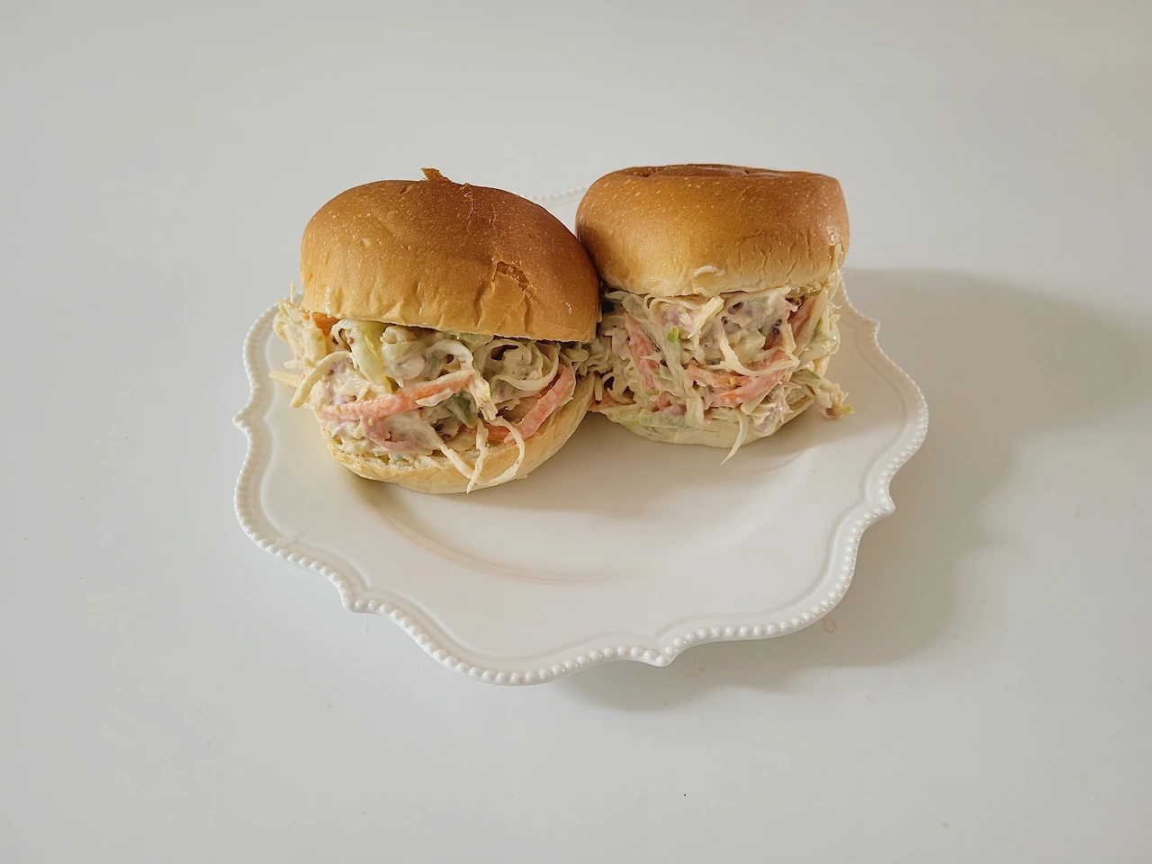 모닝롤에 사라다를 듬뿍 넣어 준다.