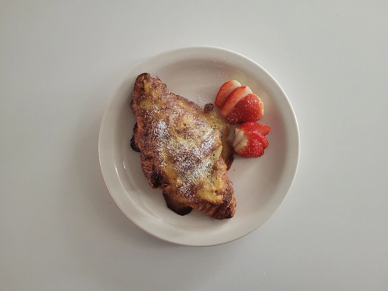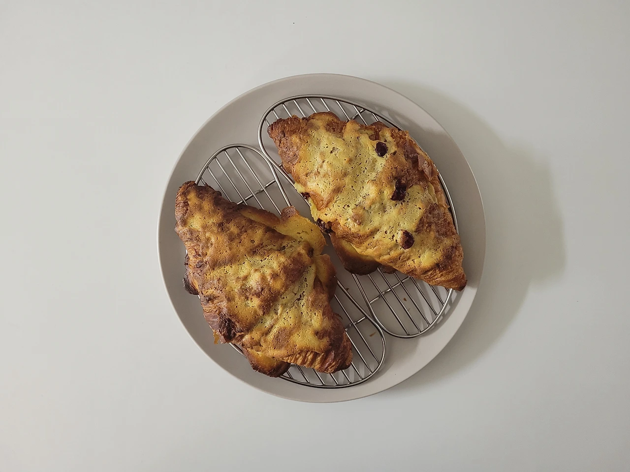 식힌 크로아상을 반 갈라서 한쪽면에 반죽을
