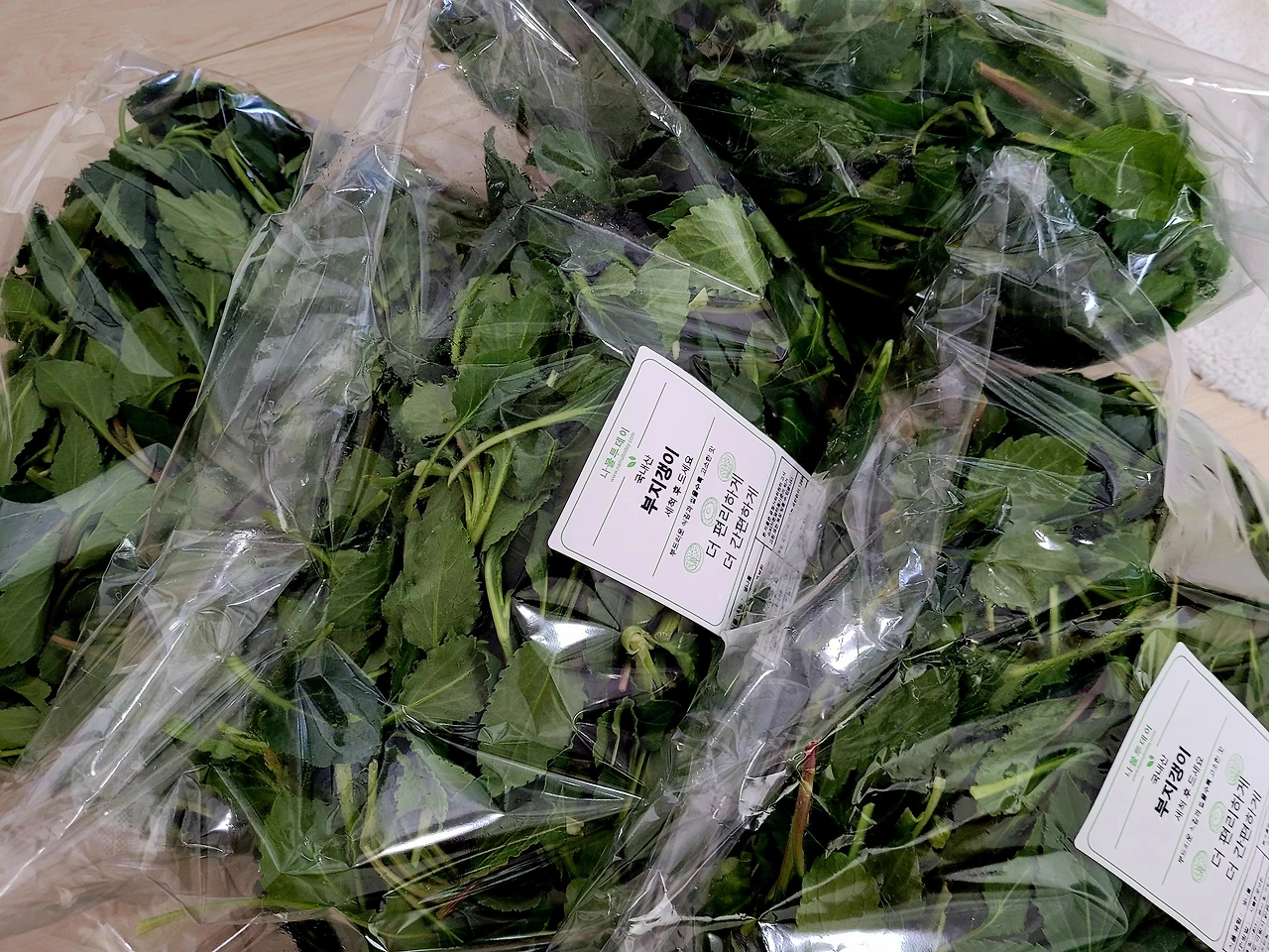 풀어해치니 어마어마한 양이지만 어린잎들이어서