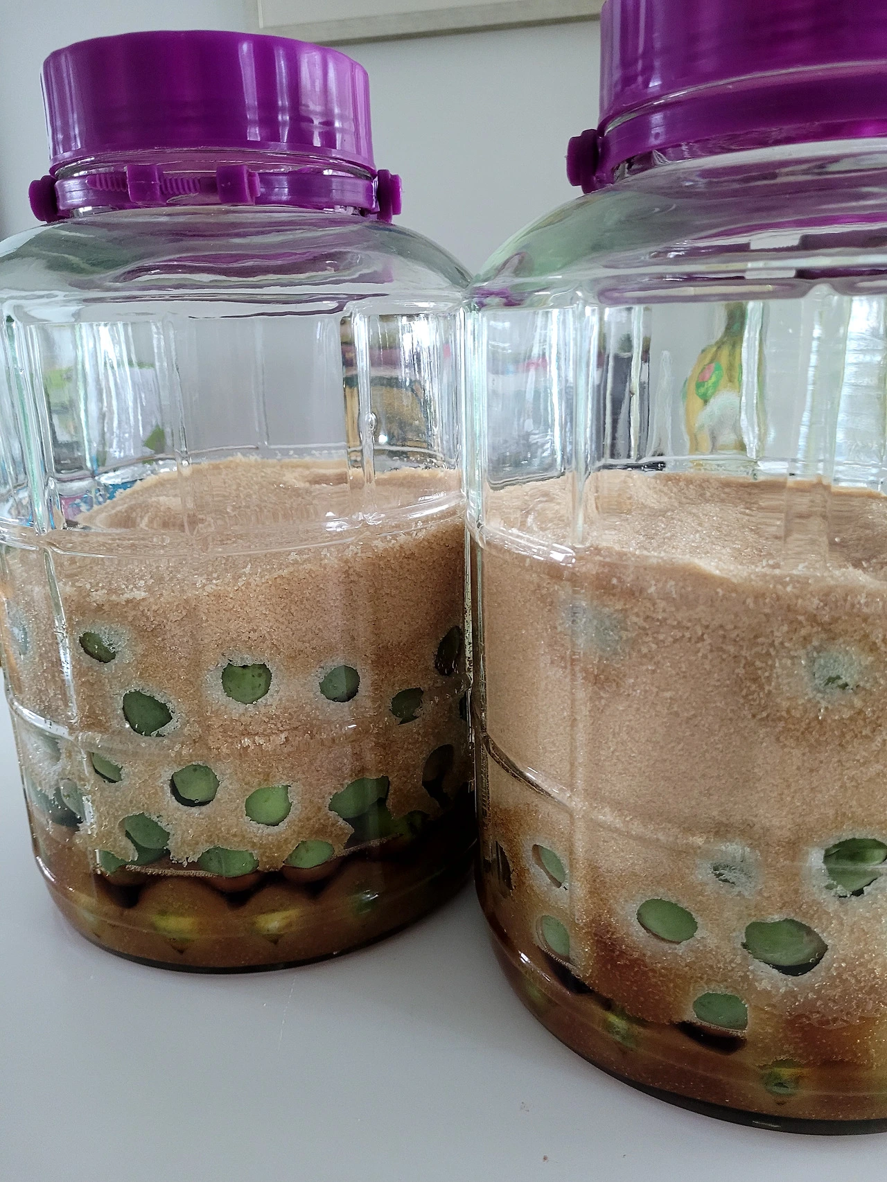 매실을 씻고 말리고 꼭지제거하고 설탕붓고...
