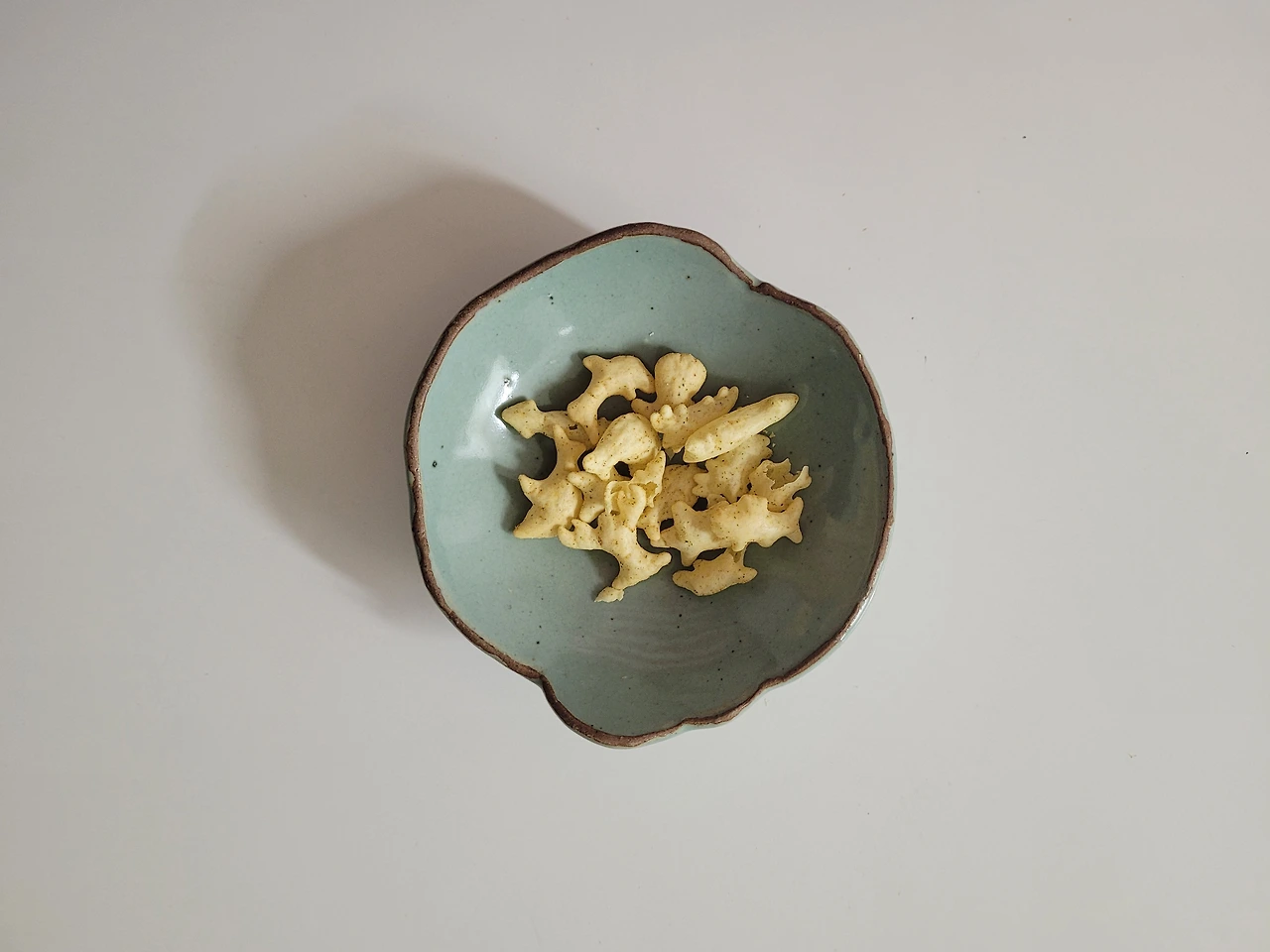 그래서 접시에 10등분을 해보니 한 번에 먹을 수 있는 양이 해양생물 12개 남짓했다.