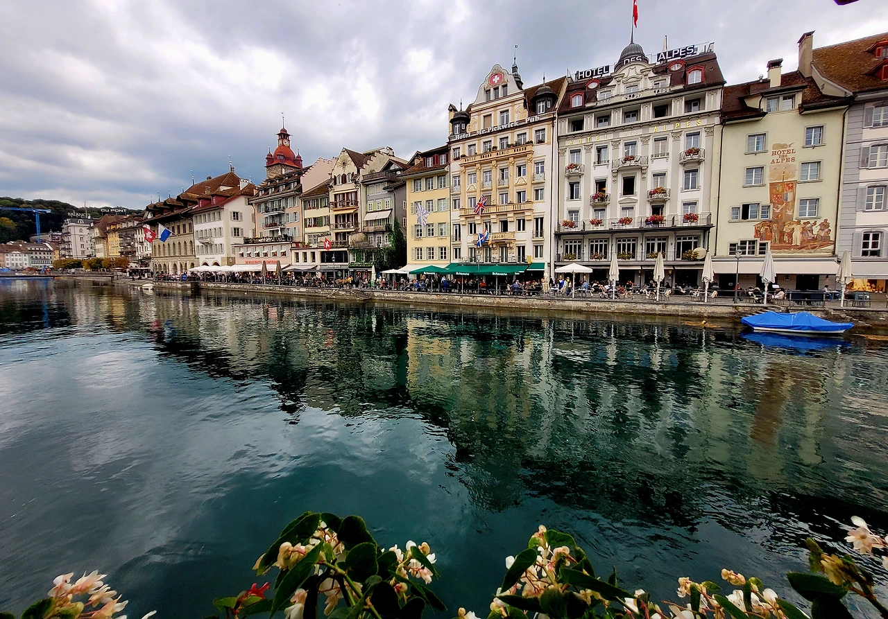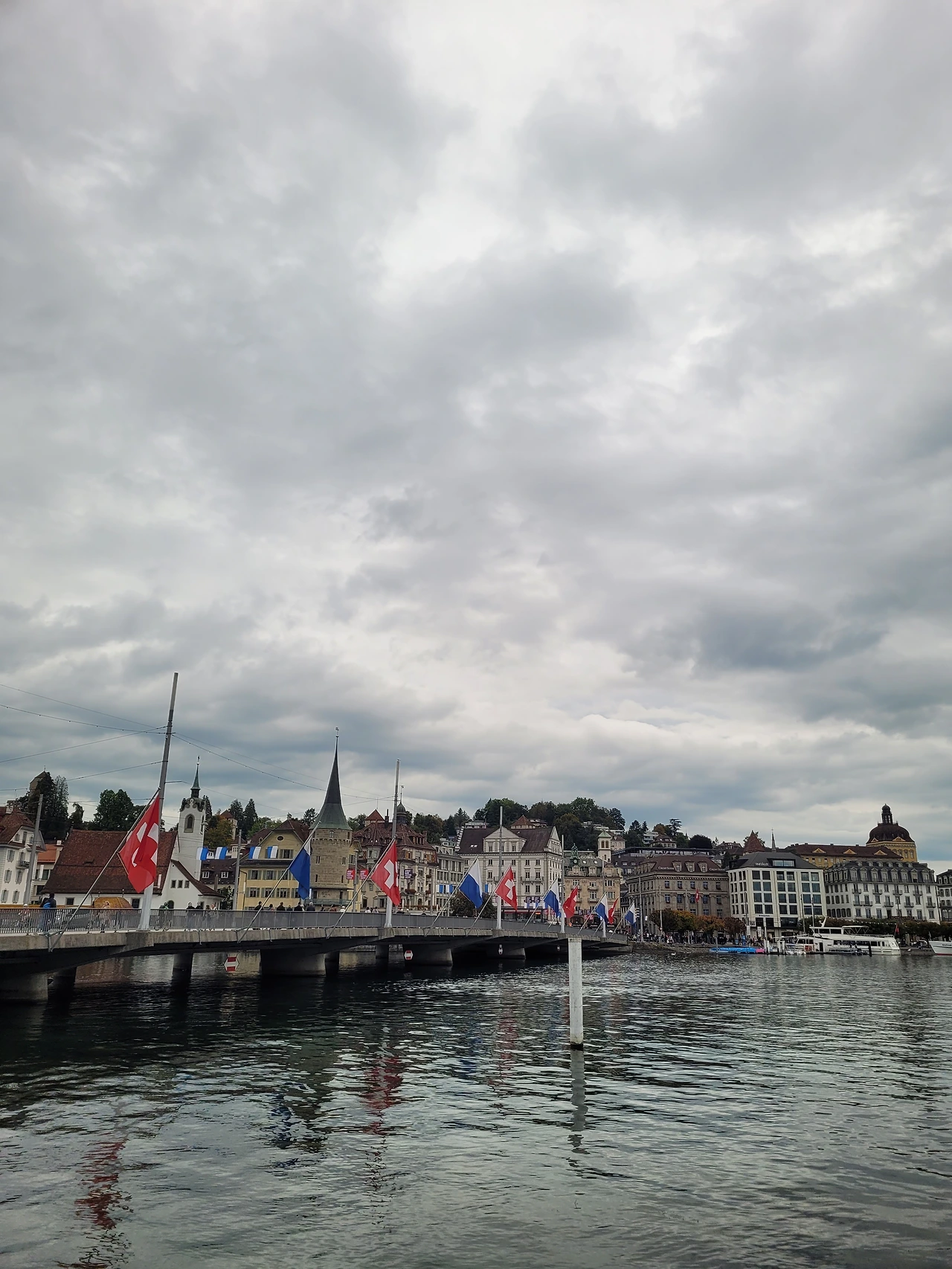 중앙역에서 조금만 걸으면 이렇게 루체른 호수가 보인다. 우리가 갔을 때 여러 축제들이 겹쳐서 다양하고 화려한 깃발들이 휘날리고 있었다.