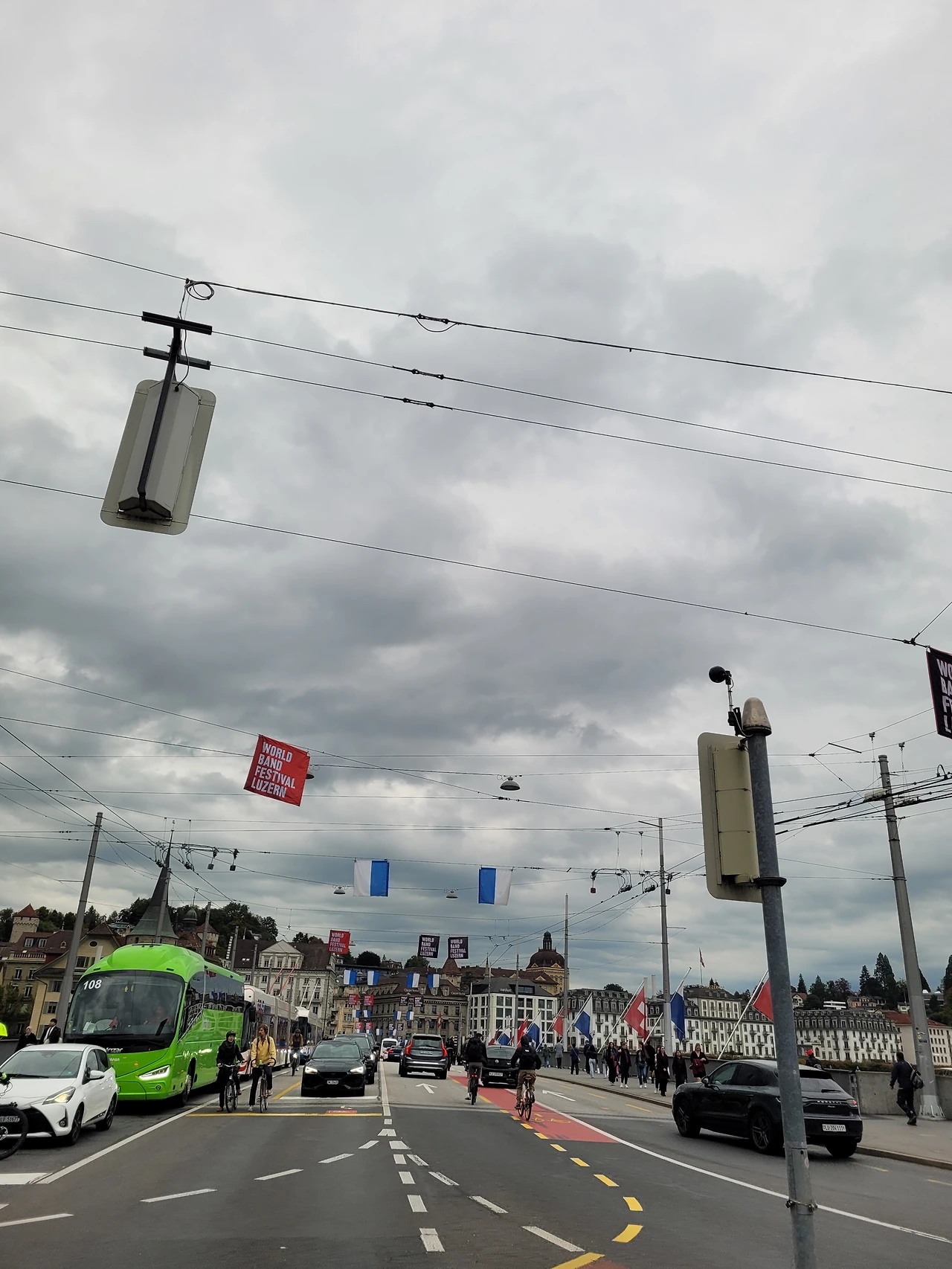 휴게소에서 잠시 쉴 때만 해도 해가 쨍하고 맑았는데 루체른에 도착하니 구름이 많고