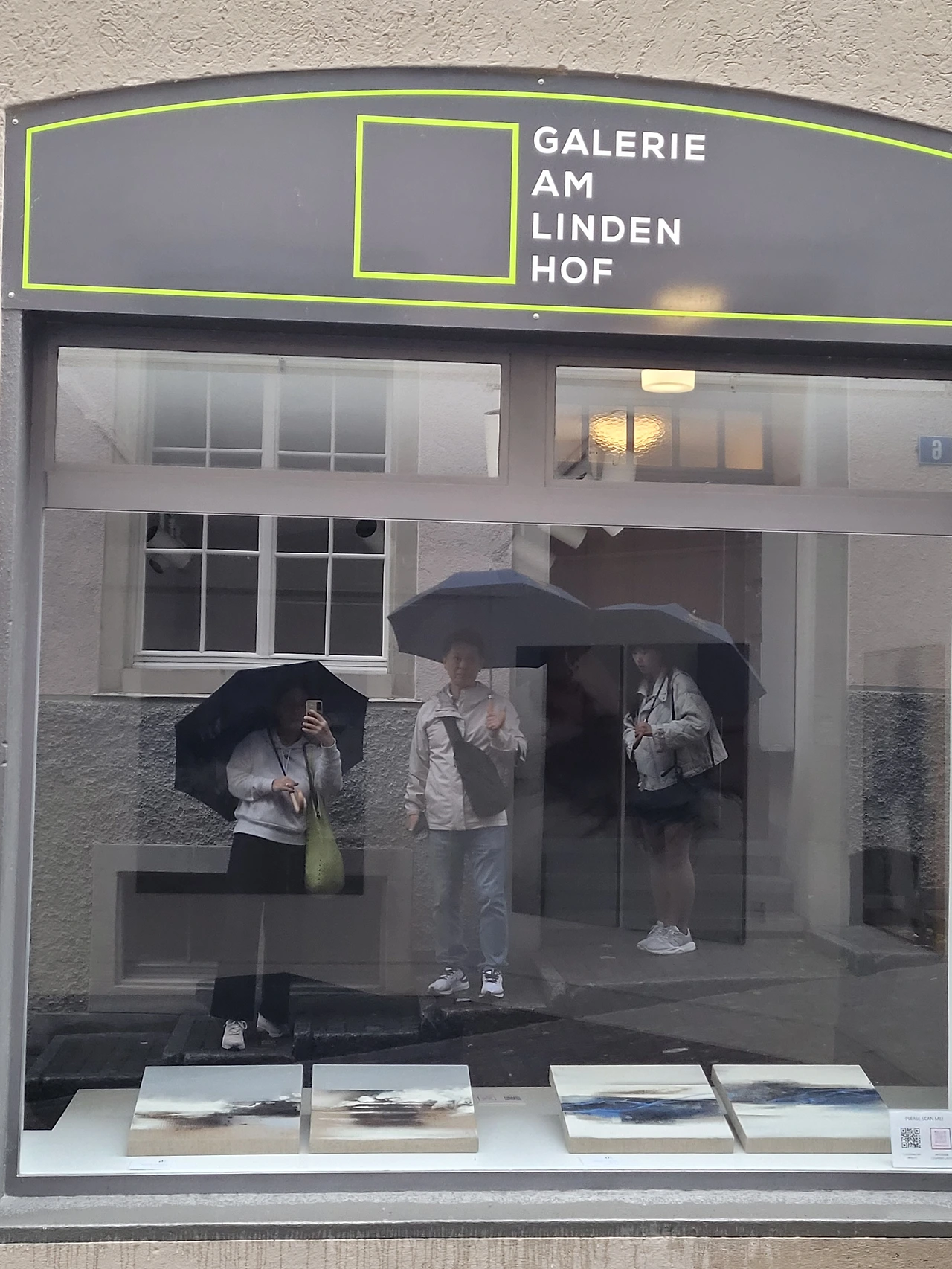 걷다가 갤러리 유리창에 비친 우리의 모습을