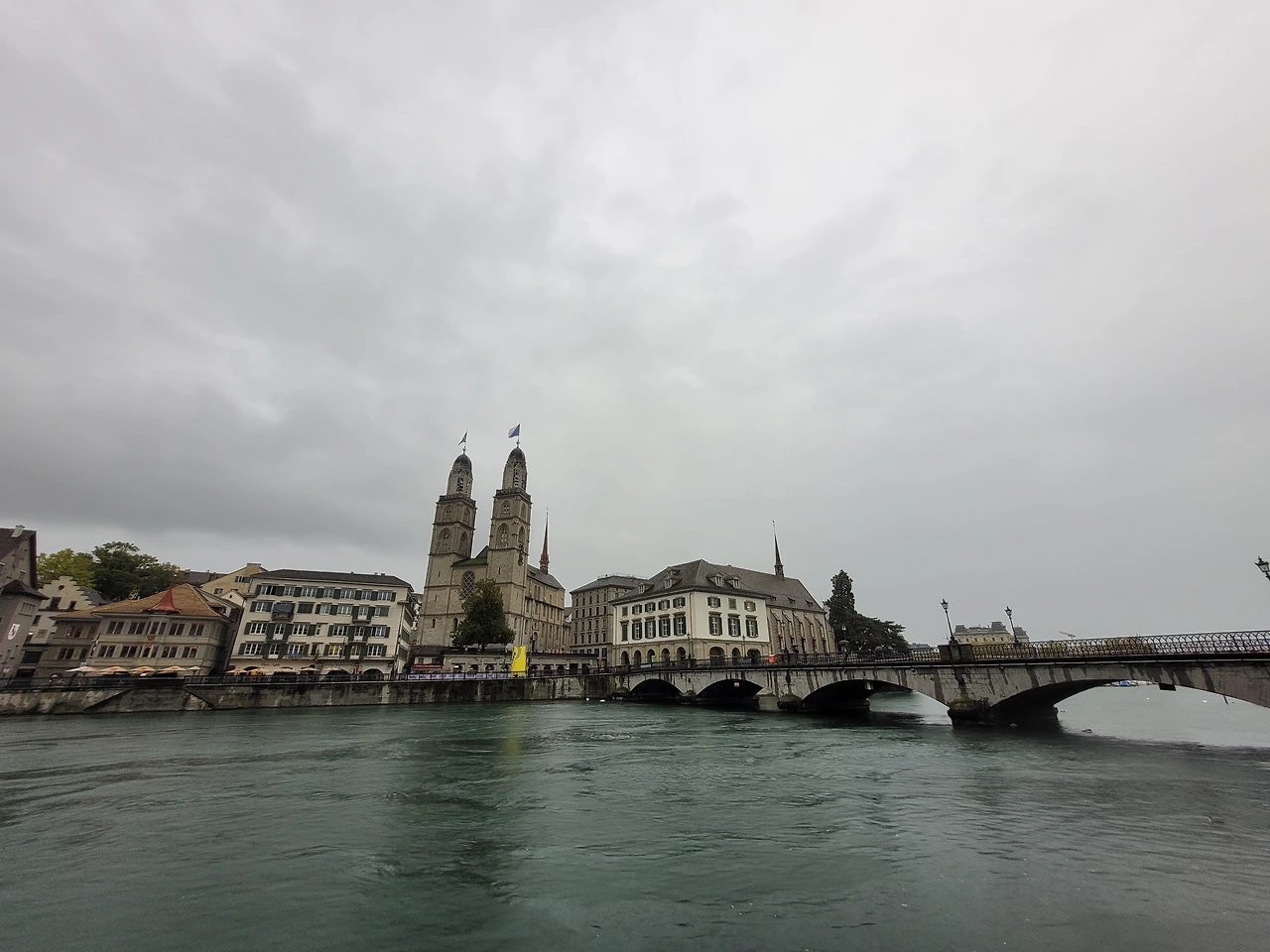 뮌스터 다리를 건너기 전이다. 밤사이 내린 비 때문에 리마트 강물이 넘칠 듯했다.