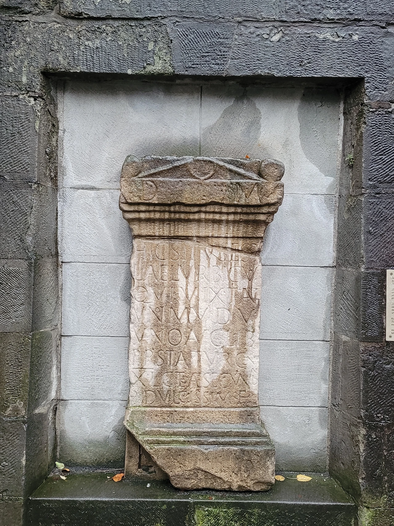 실감케 했다. 언덕을 따라 올라가는데 누군가의 오래된 묘비가 그곳을 지키는 듯했고 ( 나중에 찾아보니 루시우스 엘리우스 우리비쿠스의 묘지석이다 AD200) 빗물에 낙엽이 떨어져 실수하면 미끄러질 듯했다.