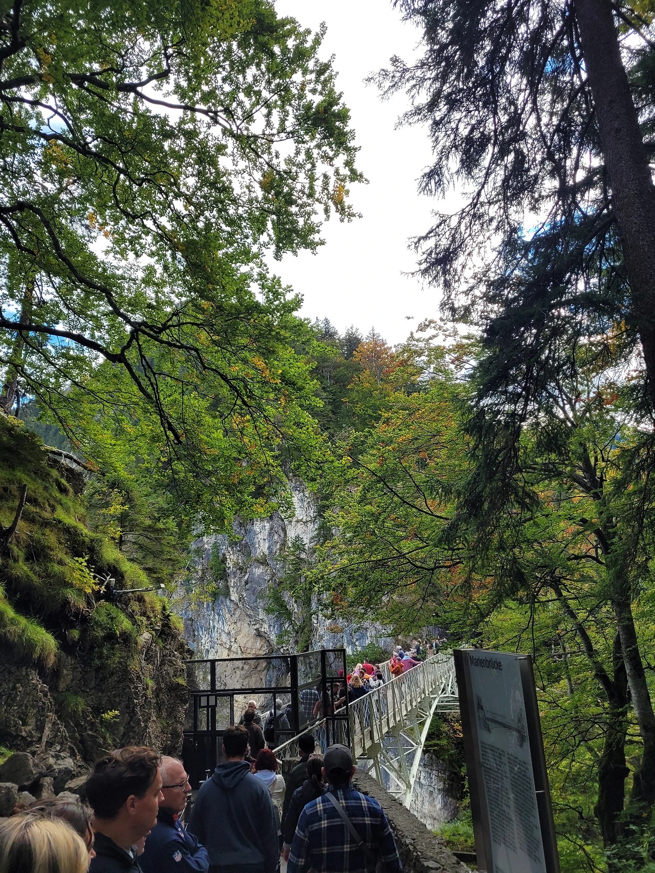 노이슈반슈타인성을 가장 가까이 볼 수 있는 곳은 마리엔 다리이다. 줄 서지 않으려고 아침 일찍 이곳에 왔는데 숲길을 걷느라 이미 한 시간을 지체하여 숨 가쁘게 뛰어 다리에 도착했다.