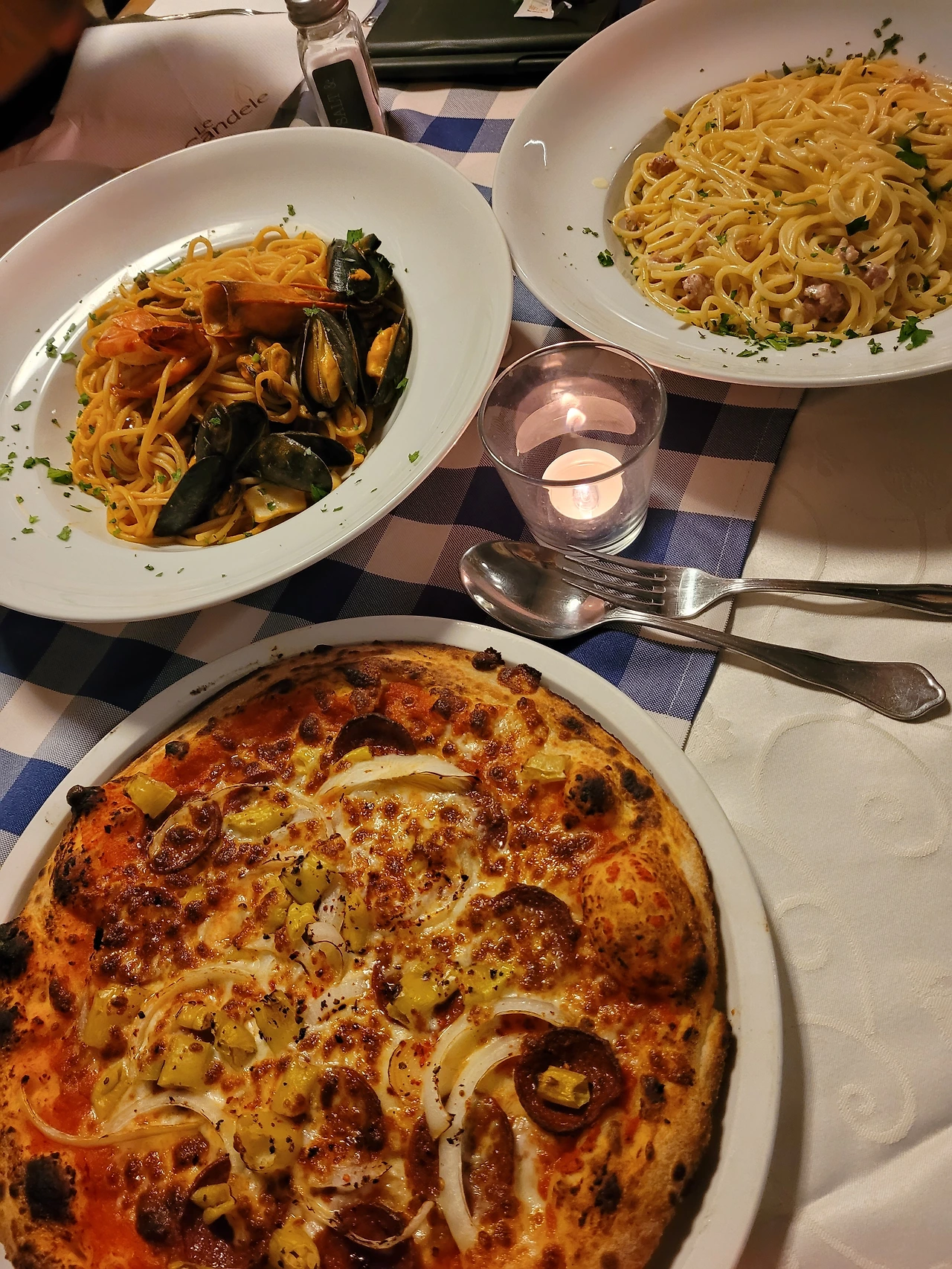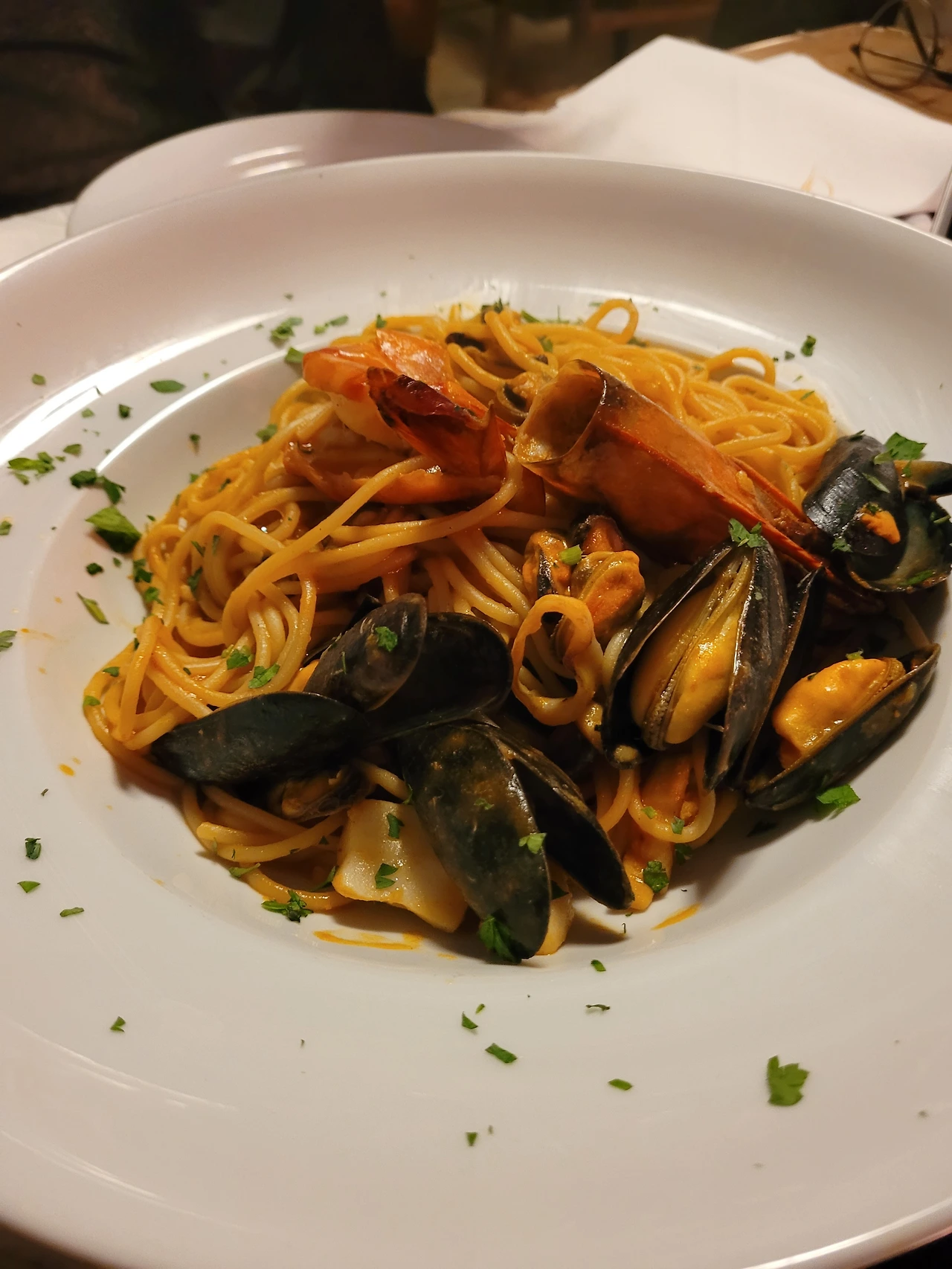 해물파스타가 굉장히 맛있었다. 유럽의 식당들이 대부분 그렇듯이 이곳도 조명이 어슴푸레하여 오직 먹는 것에 집중할 수 있었다. 재료가 매우 신선하여 씹을수록 깊은 맛이 느껴지는 파스타였다.