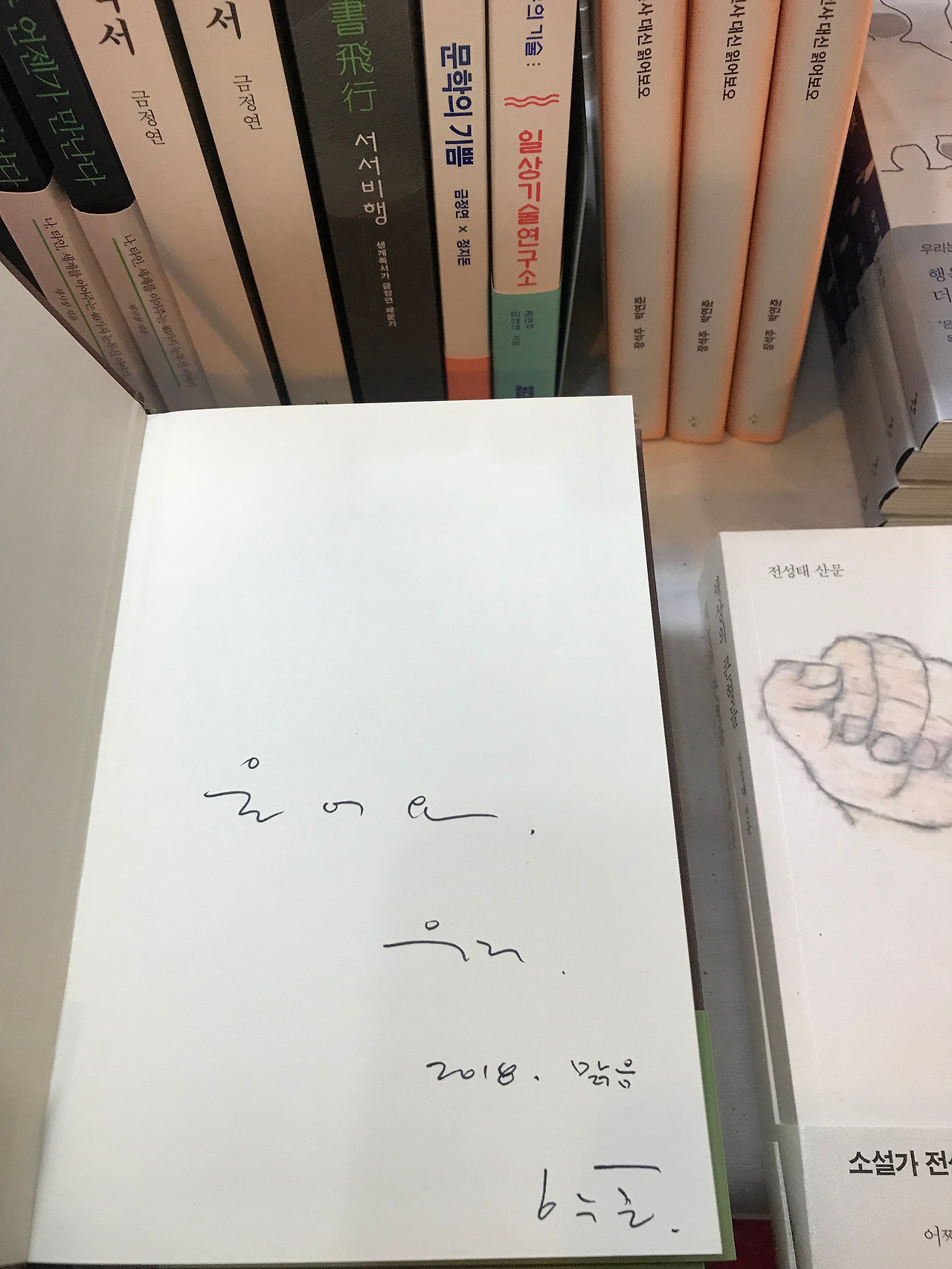 인문사회과학 서점의 역사를 조금이라도 반영한듯, 한국 소설가들의 책이 많이 놓여져있었다.