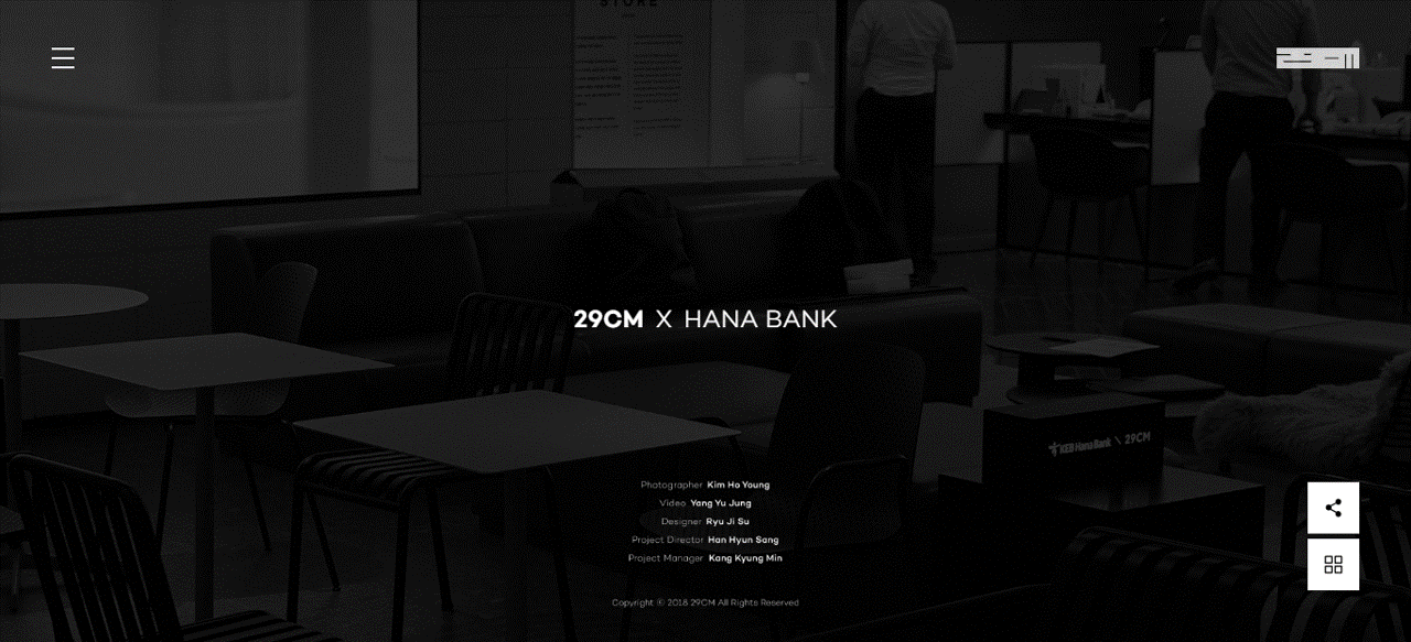 하나은행 관련 업무를 하며 '컬처뱅크'의 개념을 이미 알고있었고, 북바이북 광화문점이 그 예 정도겠구나 싶었다. 하지만 이번에는 조금 남달랐다. 은행과 라이프스타일샵의 접점은 무엇일까? 에 대한 궁금증, 타겟도 전혀 다른 두 브랜드의 만남이라니. 무엇보다 더 궁금했던건 29CM만의 말맛으로 어떻게 이 곳을 소개하고 있을지가 가장 궁금했다. 기대만발. 웹페이지부터 바로 들어가봤다.