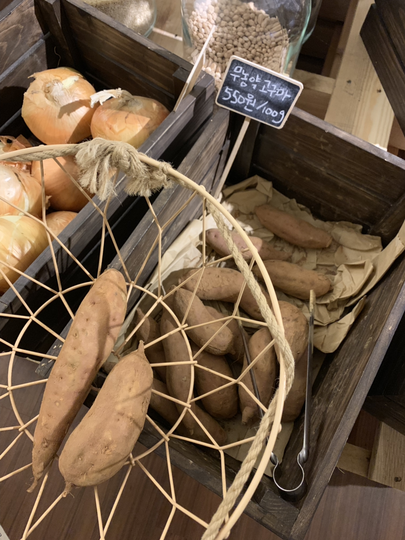 사실 이런 방식이 약간 서툴고 어색하지만 재미있긴했다. 안내문이 적힌 벽을 그냥 지나쳐서 저 바구니째로 카운터에 들고갔다가, 사장님이 손수 무게도 확인해주시고 덤으로 하나 더 얹어주셨다. 집 앞 마트나 편의점에서는 경험 할 수 없는 따뜻함이 있었기에 괜히 더 좋은일 하는 것같고 훈훈해진다.