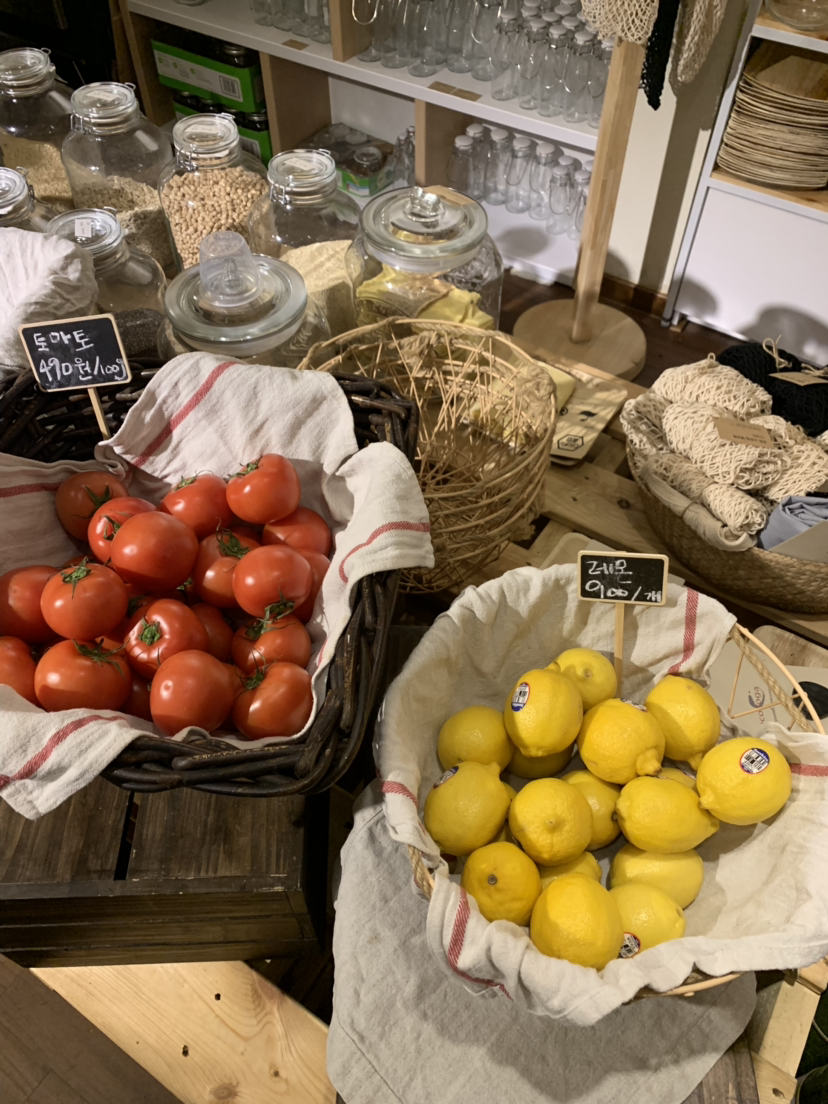말로만 듣던 제로웨이스트라니. 식재료부터 야자수 잎으로 만든 접시, 비건 비누, 오가닉 손수건까지 두루 갖췄다. 이곳의 농산물은 무농약으로 길러진 아이들이다. 판매하는 70~80%가 친환경 인증을 받았다. 환경을 생각하는 스토어인만큼, 토양의 건강까지 생각하는 농사로 얻어진 수확물들이 손님들을 기다린다.