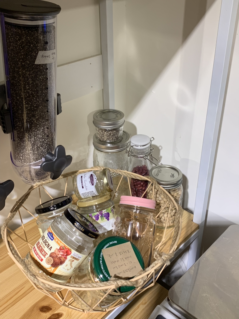 주로 단골 손님은 동네 주민분들인데, 유리병이나 쇼핑백을 많이 기증하고 가셔서, 그분들이 남기고 가신것들을 쓰윽 부탁해서 사용 할 수 있다.