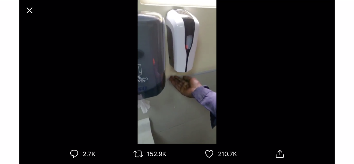디스펜서가 그의 검은 손을 인식하지 못한다는걸 증명하려고 촬영을 했죠.