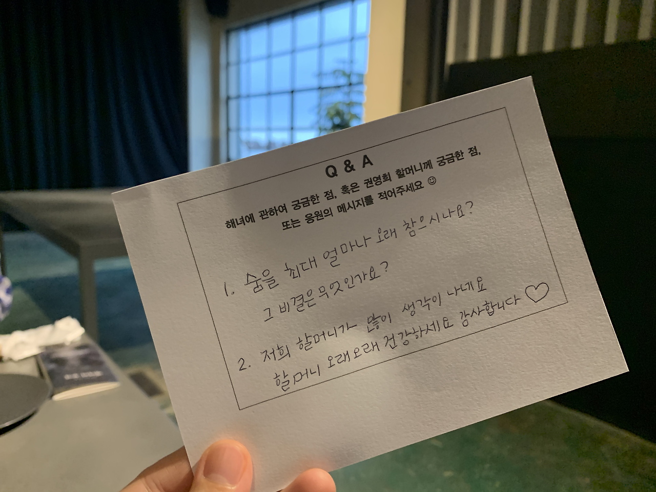 가장 인상깊었던 부분은 해녀 할머니와 Q&A시간이었다.