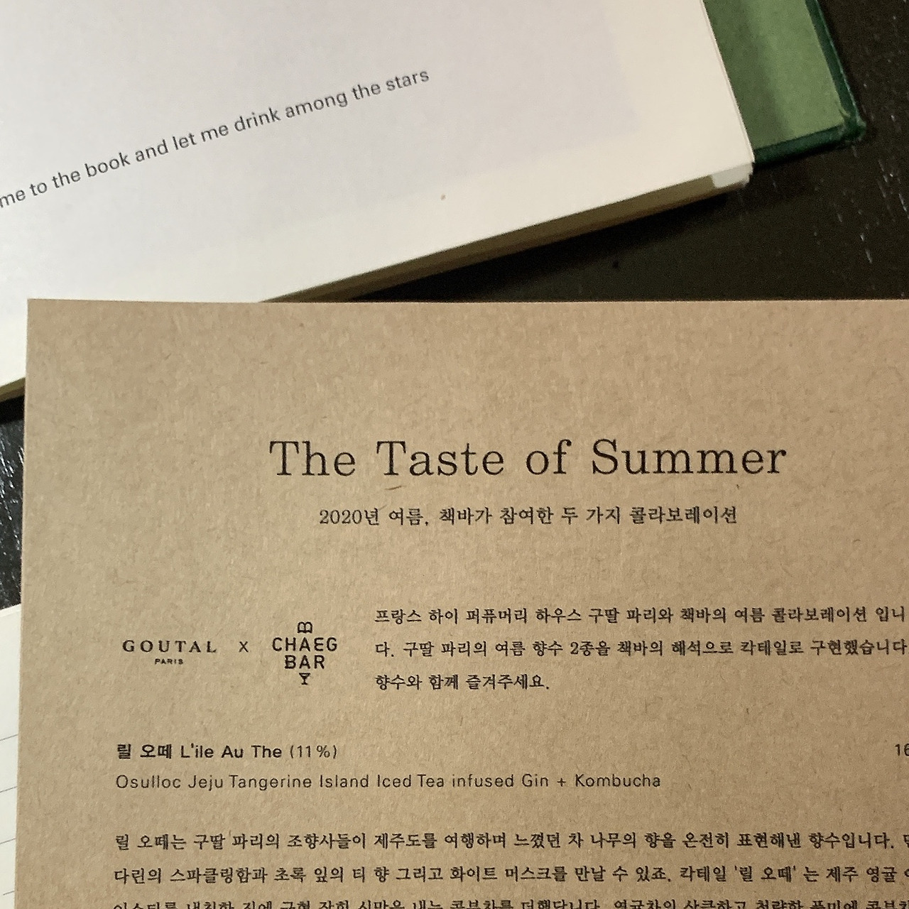 책에서 나온 술을 직접 메뉴로 만들어내는 컨셉은 오래전부터 소식을 접해서 알고있었는데, 실제로 내가 그 감흥을 느껴보고 싶었기 때문이다.