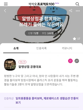 1만원을 내고 매일 100일 동안 제로웨이스트 관련된 행동을 실천하고 인증샷을 올리는 챌린지인데, 기대중이다.