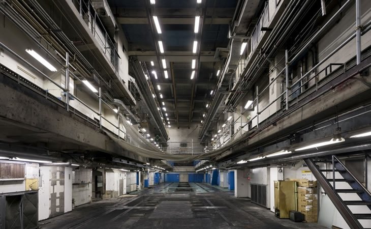 이 곳은 신문을 쉼없이 뽑아내는 엄청 큰 윤전기들이 돌아가던 곳이었어서 층고가 한 10m 정도에 이른다.
