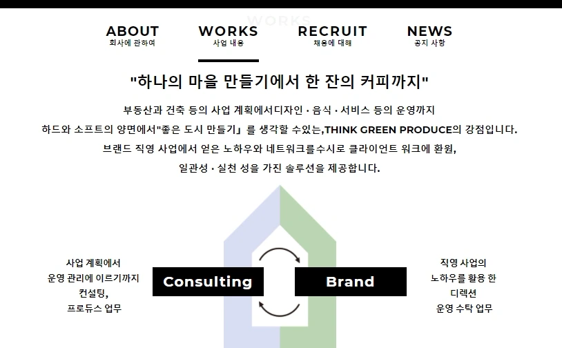 생활이 잘 되어있어야 문화가 만들어지는 것이며, ‘지속성’이 정말 중요하다. 지속성을 위해 사업계획부터 Creative Design에 이르는 영역까지 폭넓은 분야를 다루는 Think Green Produce.