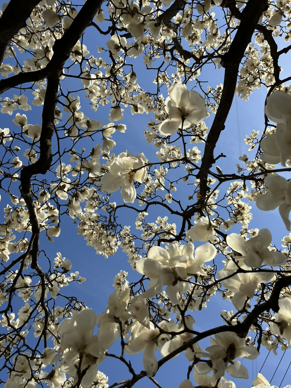 이제 갓 피어난 꽃잎을 보니 구김 없이 우아한 웨딩드레스가 떠오른다. 연둣빛 잎이 발달하지 않아 멀리서 봐도 나무에 흰 꽃만 보이니 존재감이 꽤 있는 편이다. 볼 때마다 두세 살 아이의 최애 간식으로 꼽히는 하얀 떡뻥 같기도 해 ‘떡뻥이 나무에 주렁주렁 열렸다'고 속으로 외친다. 이 생각은 딱 요맘때 할 수 있는 '제철 생각'과도 같아서 키득거리며 마음껏 떠올린다.