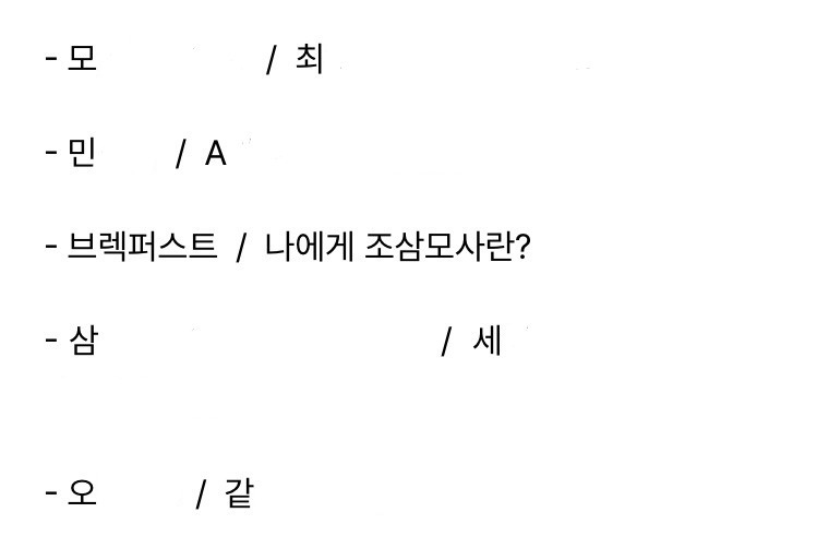 우리 넷은 이미 모인 적이 있다. 작년 늦가을 즈음 아침밥 홍보 공모전에 함께 도전했다. '아침밥파'라는 인물이 나와 열렬히 토론하는 그런... 영상이었다. 결론적으로 수상하진 못했지만, 어찌 됐건 우리는 쌀알 마냥 '아침밥'이란 단어로 뭉친 팀이었다.