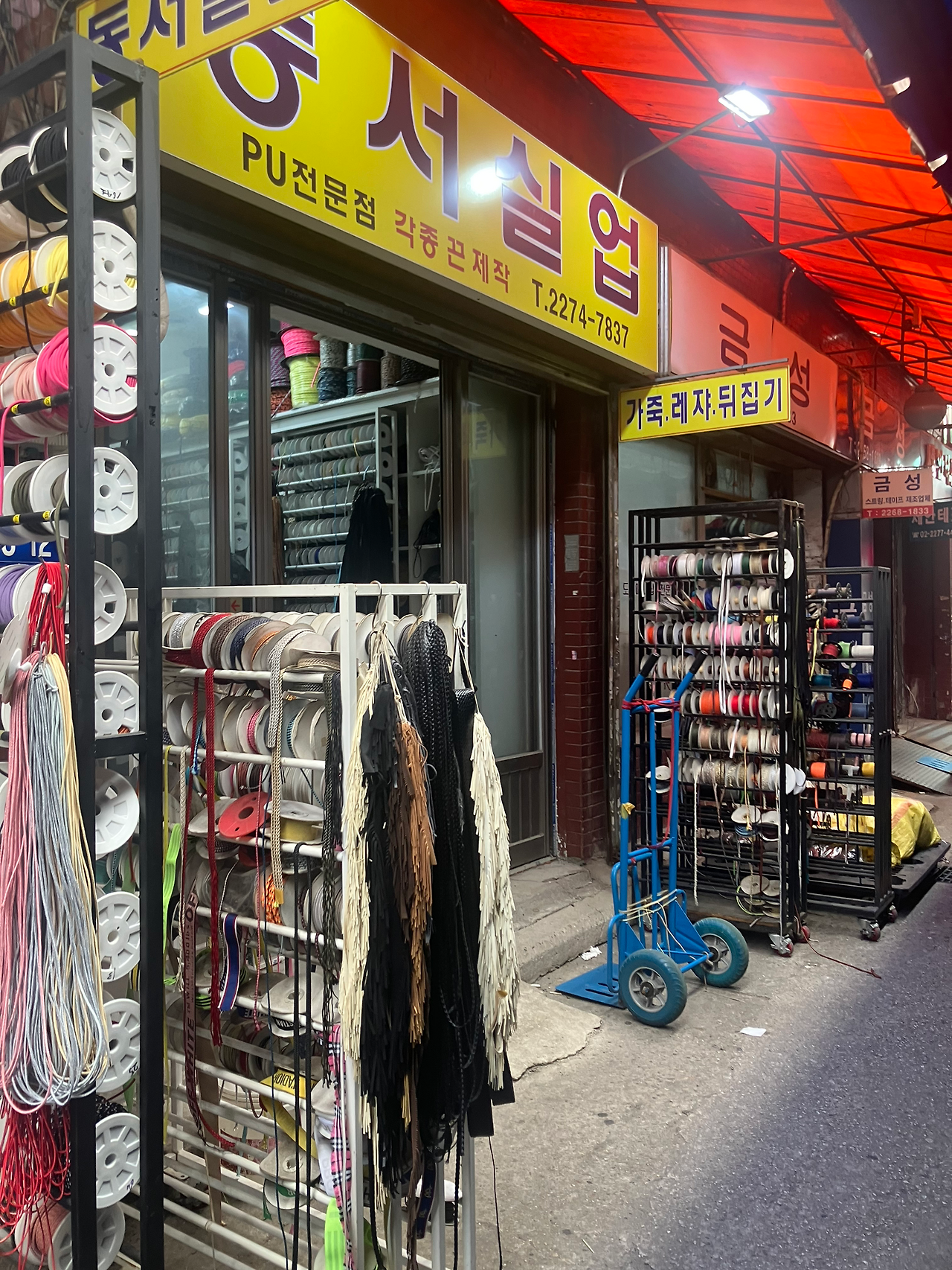 그중에서도 ‘사람’이 인상 깊었다. 원단 가게 사장님과 쇼핑몰 사장님은 “내가 사장님 스타일을 아니까~”, “이번에 새로 들어온 건데~”하며 대화를 나누고 있었다. 또 쇼핑몰 사장님이나 배달 기사님만 있을 줄 알았는데 나 같은 학생들도 많이 보였다. 사장님과 손님의 나이대가 다양했다. 내 또래로 보이는 청년 여럿이 1층 단추가게 자리를 지키고 있었고, 5층에는 내 아버지-할아버지 뻘 사장님이 원단을 팔고 계셨다. 나이라는 숫자가 무색해지는 공간이었다.