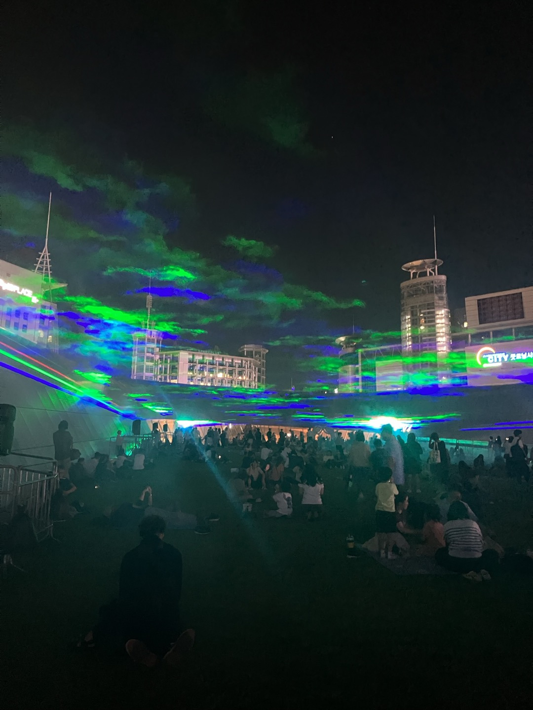 언제부터인가 전시와 패션의 1번지가 된 DDP에 언젠가 오로라가 뜬다는 뉴스를 봤다. 해질 무렵 어둑해질 때까지 기다리면서 주변을 걷다가, 유려한 은빛 곡선 사이로 초록빛이 새어 나오는 거을 발견 했다. 미로처럼 이어진 길을 따라 초록빛을 쫓았다. 한참을 걷다 보니, 오로라가 피어나는 하늘이 눈에 들어왔다. 언덕길을 따라 도착한 곳에는 폭신한 잔디가 펼쳐진 평원이 드러났다. 이미 많은 사람들이 돗자리를 깔고 앉아서 오로라를 즐기고 있었다. 어두움 속에서 초록빛들이 떠돌고 음악이 흐른다. 도란도란 나들이 온 가족들의 말소리가 들려온다. 미구엘 슈발리에의 <보레알리스 Boreali>라는 작품이다.