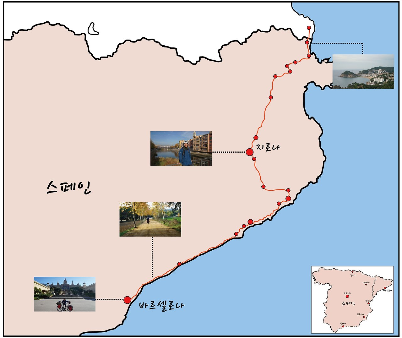 프랑스 국경 꼴리우흐에서 스페인 지로나까지 달려왔다. 지로나에 들리기 전 웜샤워 호스트 에르메스가 있는 셀라(Cella)라는 곳에 하루 머무르고 다음날 지로나로 향했다. 지로나는 <푸른 바다의 전설>과 <왕좌의 게임> 극 중 배경이 된 도시이기도 하다. <왕좌의 게임>?에서 지로나 대성당을 배경으로 라니스터와 ?? 와의 전투씬이 펼쳐지는 장면을 볼 수 있다.