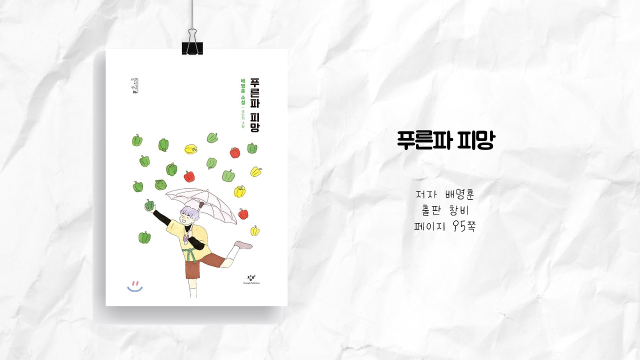 우리나라의 상황을 떠올리지 않을 수가 없습니다. 우리에게도 '피망' 같은 실마리가 불현듯 찾아와 갈등을 끊어내고 화합하고 대화하는 하나의 평화를 되찾을 수 있길 바랍니다. 그리고 그것이 개개인이 짊어져야만 했던 고통과 아픔, 피해를 다스리고 다시 행복해지는 계기가 될 수 있기를 바랍니다. 푸른파 행성의 사람들이 한데 모여 고기와 야채, 과일을 나누어 먹었던 것처럼 말입니다. 그런 점에서 비춰볼 때, <푸른파 피망>을 읽고서 한국전쟁에 대해 그리고 통일 문제에 대해 진지하게 이야기할 수 있는 장이 열릴 수도 있겠습니다.