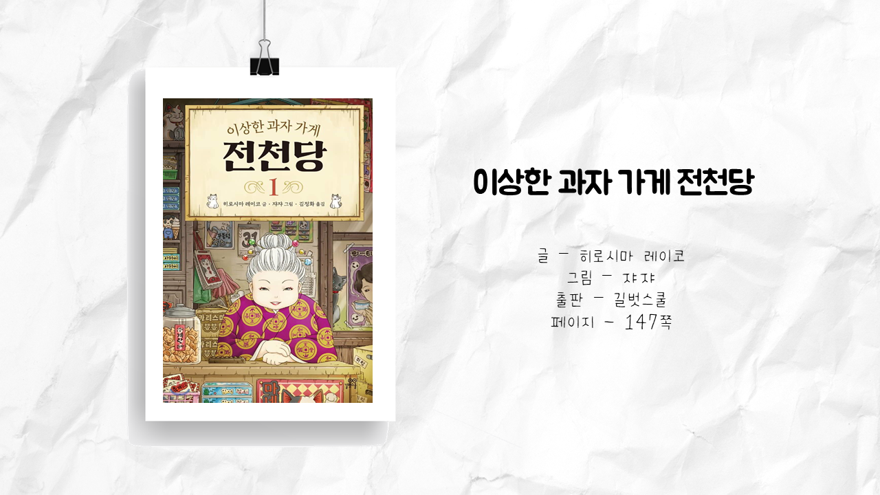 제가 지금 함께 하고 있는 우리 반은 고작 일곱입니다. 고작 일곱의 아이들, 책 읽기에 진심인 선생님이 있는 반이면 아이들이 독서를 즐겁게, 자발적으로 할 것 같지만 아쉽게도 꼭 그렇지만도 않습니다. 여전히 책 읽기를 기어코 시키겠다는 선생님과 아이들이 대치중이죠. 그런데 어느 날, 약속이나 한 듯이 일곱의 아이들이 쉬는 시간, 같은 책을 읽고 있는 장면을 목격하게 되었습니다. 그 장면이 바로 묘하게 생긴 흰머리의 아주머니가 떡 하니 자리 잡은 <이상한 과자 가게 전천당>과의 첫 만남이었습니다. 전 냉큼 그 책을 빌려 읽기 시작했습니다. 보통, 아이들에게 아이들마다의 성격이나 관심 등을 고려해서 책을 추천해 주는 편인데 이번엔 제가 아이들의 추천을 받아 읽게 된 것이죠. 아이들의 선택에는 그만한 이유가 있기 마련이니까요.