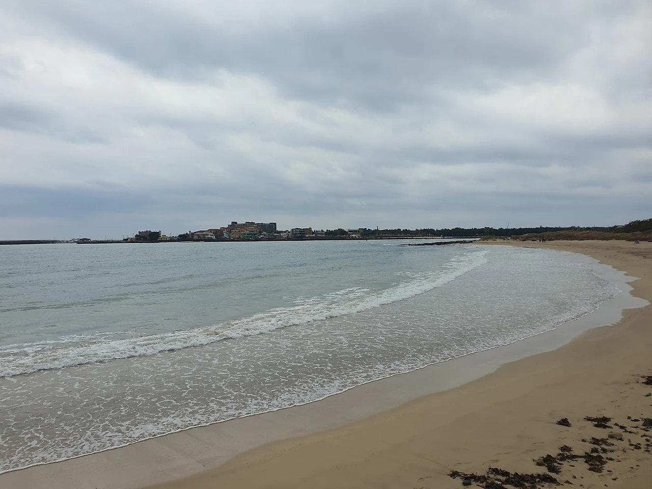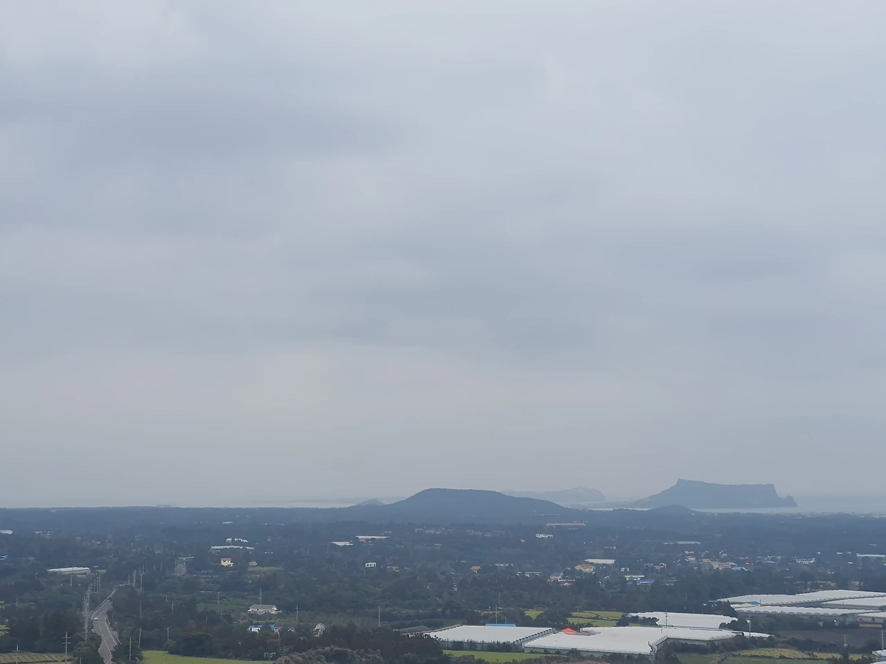 4. 독자봉에 올라 내려다보는 성산. 날씨가 아쉽지만 흐릿한 실루엣의 성산도 충분히 아름답다. 카메라에 담긴 모습은 영 아쉽지만. 독자봉 전망대에선 친구의 아내가 마련해 준 간식과 다른 올레꾼의 간식을 받아 고맙게 먹었다. 불어닥친 감염병으로 나눠 먹는 일조차 망설였던 순간들이 점차 해소되는 기분이다.
