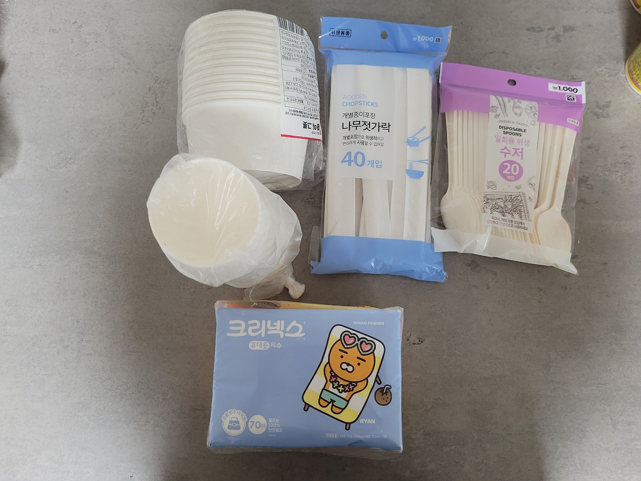 (종이컵, 종이그릇, 나무젓가락, 숟가락, 티슈)