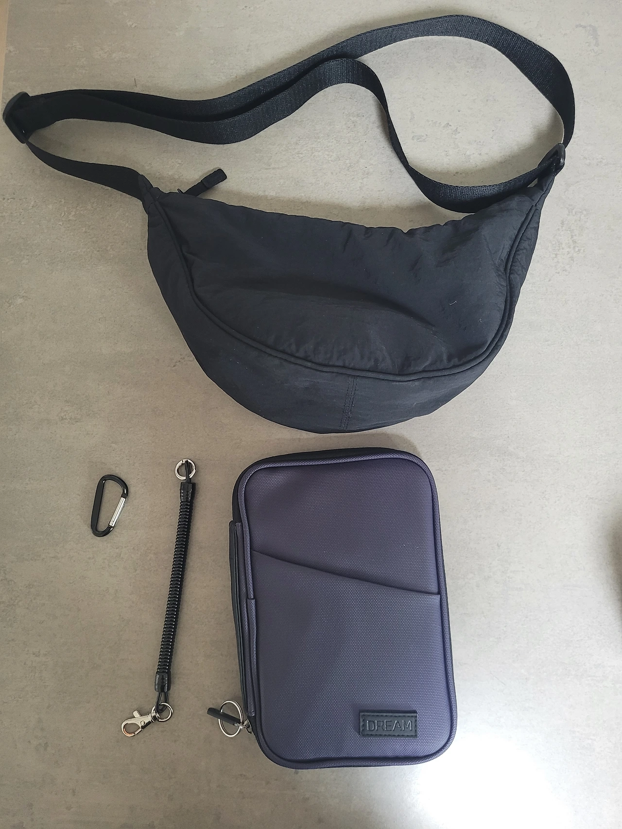 그리고 여권은 여권 케이스 가방 잠금장치에 두고 앞으로 매는 작은 가방에 스프링 줄로 연결해 소매치기를 이중으로 방지하기 위해 사용했다.