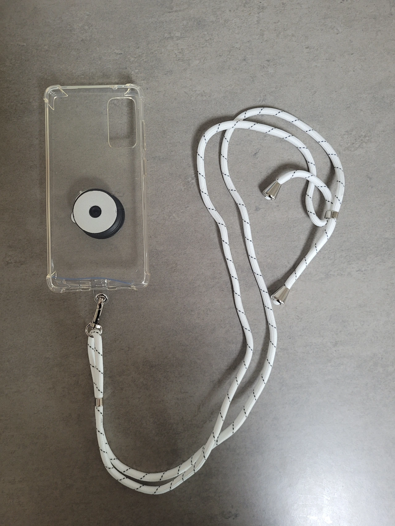 핸드폰을 나는 목줄을 이용했고 남편은 소매치기 도난방지 스프링 줄을 이용했다.