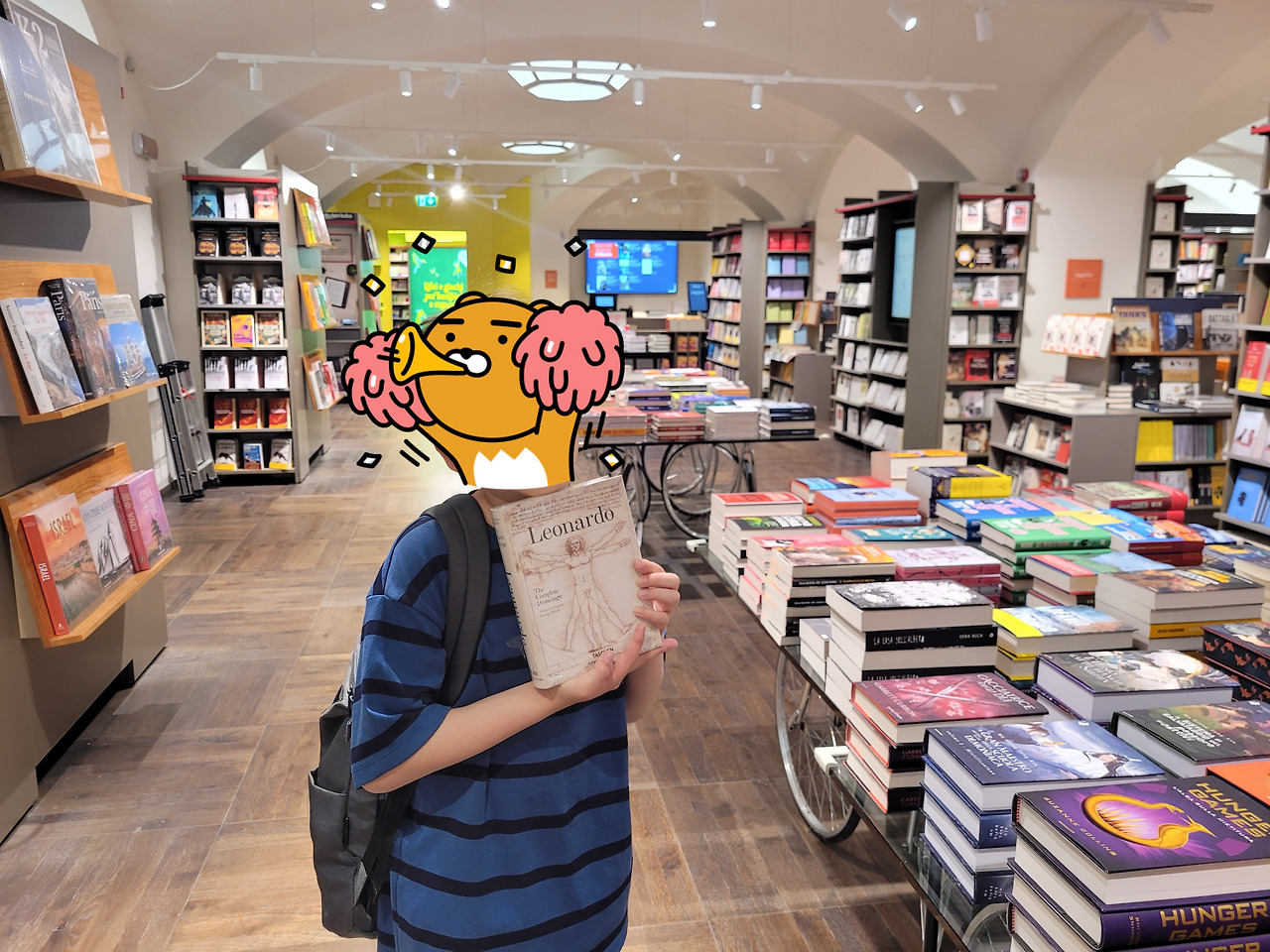 첫째 아이가 좋아하는 레오나르도다빈치 책이다. 잠깐 고민하다 아이가 좋아하는 책이니 사주었다. 그리고 레오나르도 다빈치기념비가 있는 곳으로 갔다.