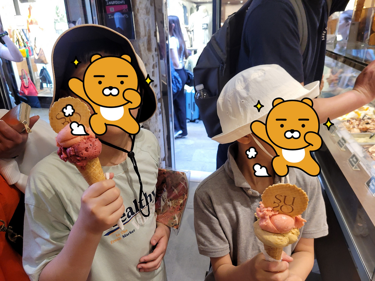 아이들은 딸기맛을 먹었는데 너무 맛있다고 한다. 당 충전을 하며 다시 산마르코 광장을 향해 갔다.