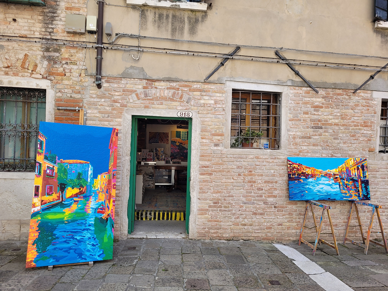 우린 안에 들어가 보았다. 화가분이 계셨다. 안은 촬영이 금지였다. 이곳에서 냉장고에 붙이는 베네치아그림을 샀는데 이번여행에서 가장 잘 산 것 중 하나인 것 같다. 10유로인데 너무나 분위기가 있다. 볼 때마다 이곳 베네치아가 생각난다. 조심스럽게 작품을 보고 있으니 화가분이 그림을 만져보라고 하셨다. 그냥 보는 것과 만져보는 건 다르다고 한다. 나쁜 것과 좋은 것이 공존하던 내 마음속에서 선한 것이 살아날 것이라는 것 같았다. 성경 말씀이 생각난다.
