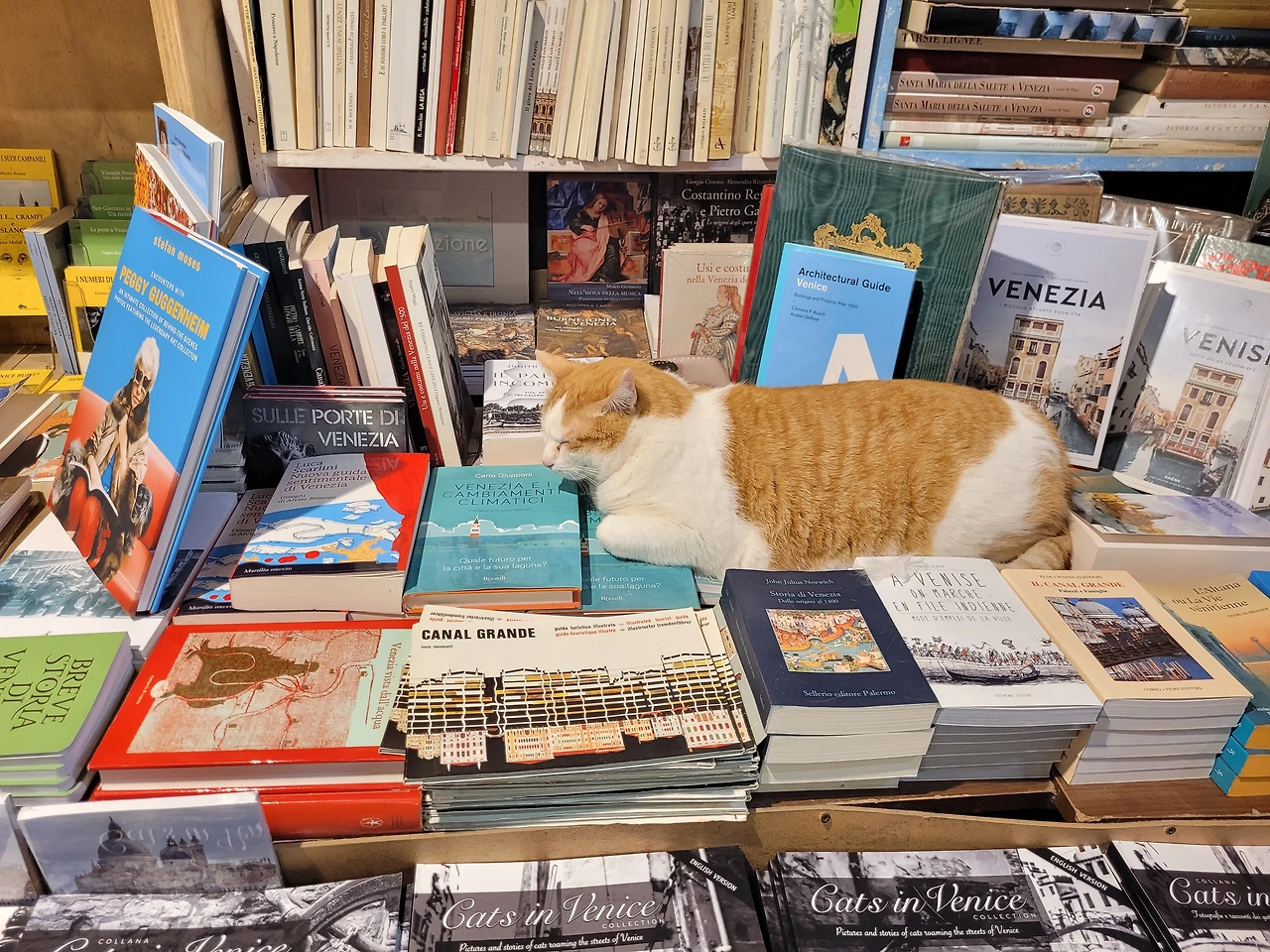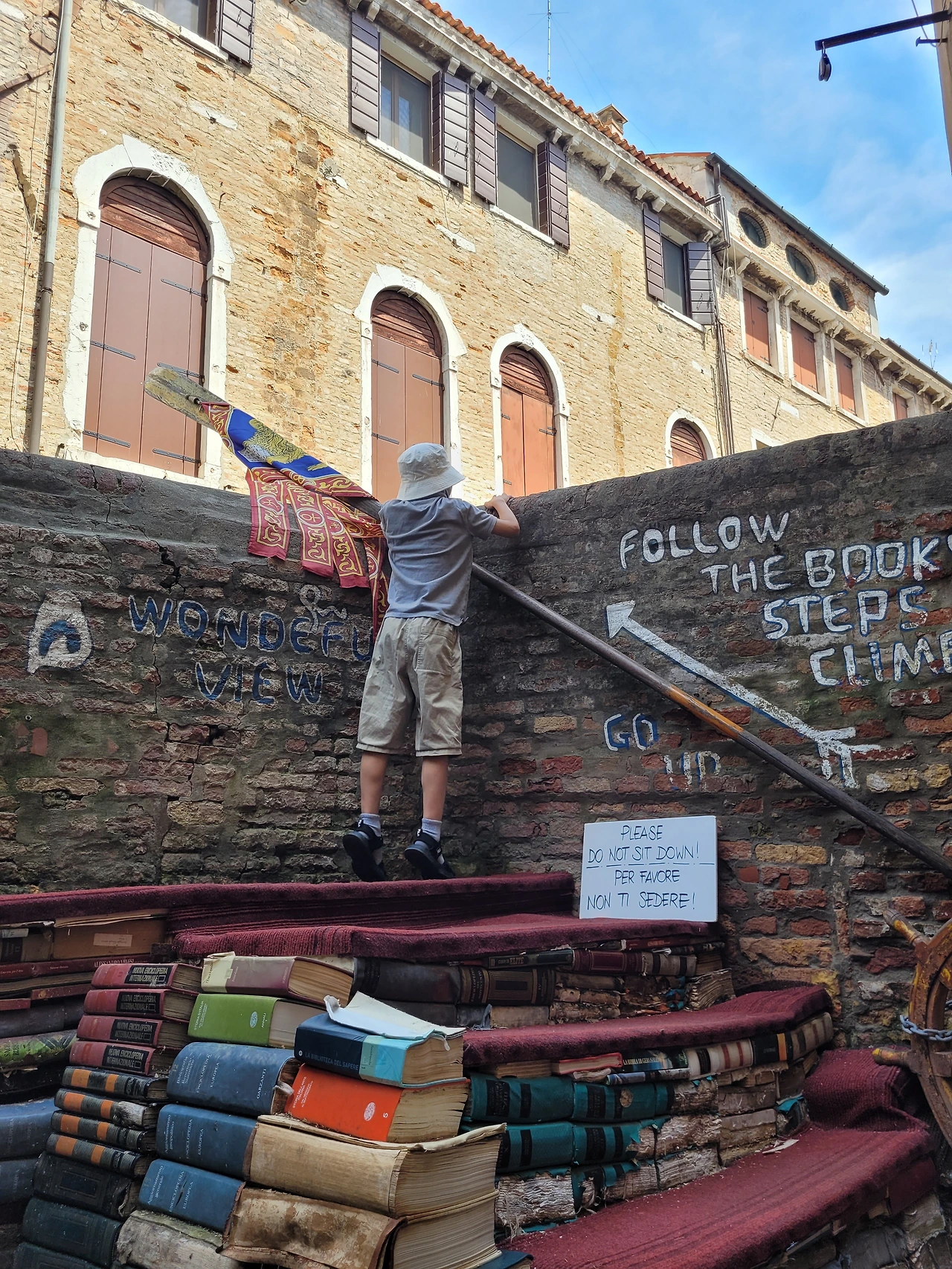 여행을 갈 때마다 서점 가는 게 큰 기쁨 중에 하나다. 이곳은 베네치아를 더욱 느낄 수 있는 곳으로 물에 젖은 책을 쌓아둔 것과 다시 물이 차올라도 안전할 수 있게 곤돌라 위에 책이 있는 것도 볼 수 있었다.