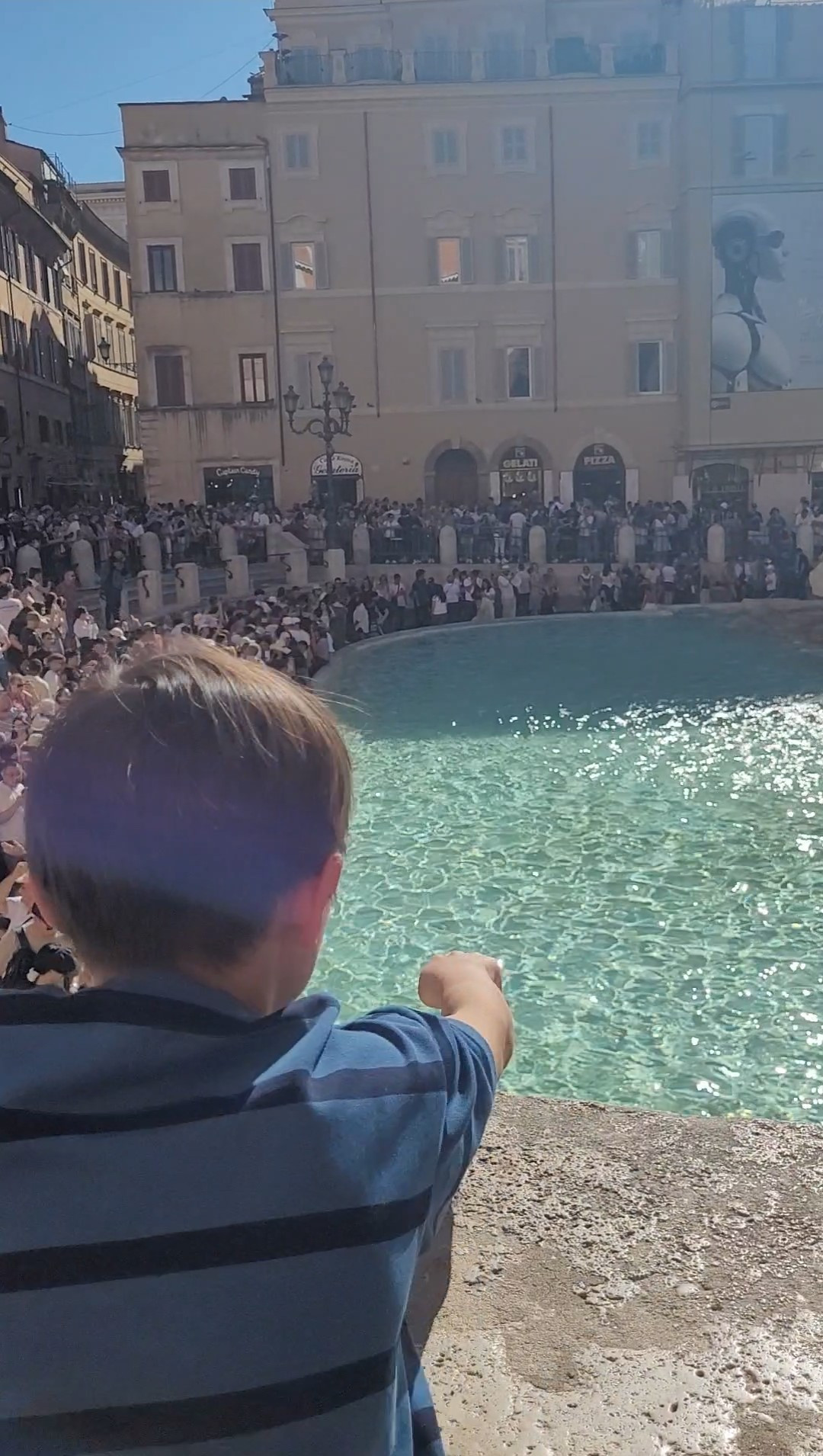 트레비 분수에서 동전을 던질 때는 분수를 등지고 서서 왼쪽 어깨 뒤로 던지며 소원일 빌어야 이루어진다고 한다. 하지만 가까이 가기에는 줄이 너무 길어서 멀리서 던지다 보니 우린 앞으로 던질 수밖에 없었다. 그래도 우리 가족의 소원이 이루어 질까?