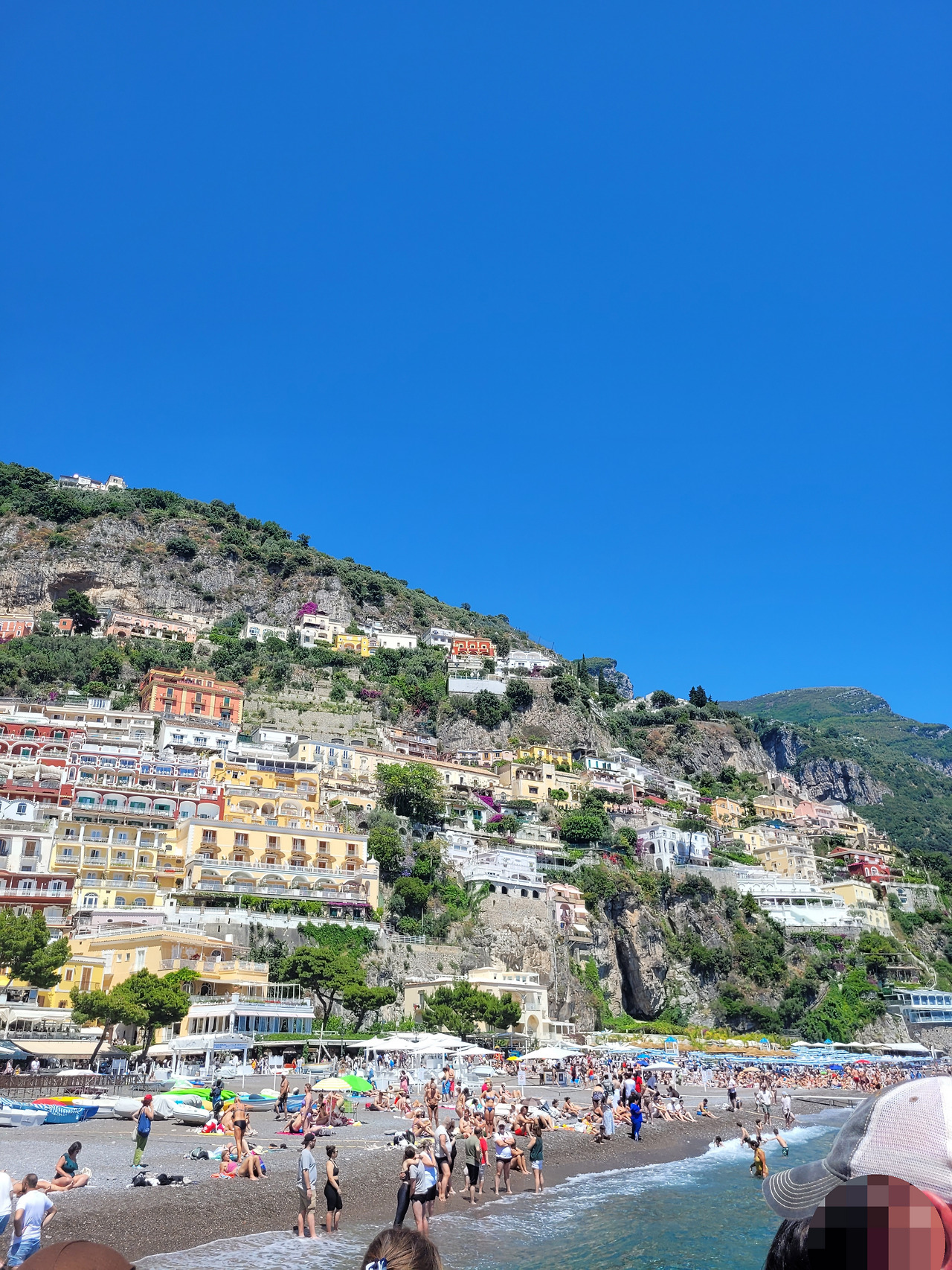 이미 바닷가 물속에 들어가 있다. 아이들은 신이 났다. 나와 남편은 양산을 쓰고 아이들 노는 걸 구경했다. 이탈리아 여행에서 남편은 이곳 포지타노 해변에서 물놀이 못 한 게 너무 아쉽다고 한다. 이제는 모일 시간이 얼마 남지 않아 아이들에게 그만 가자고 하니