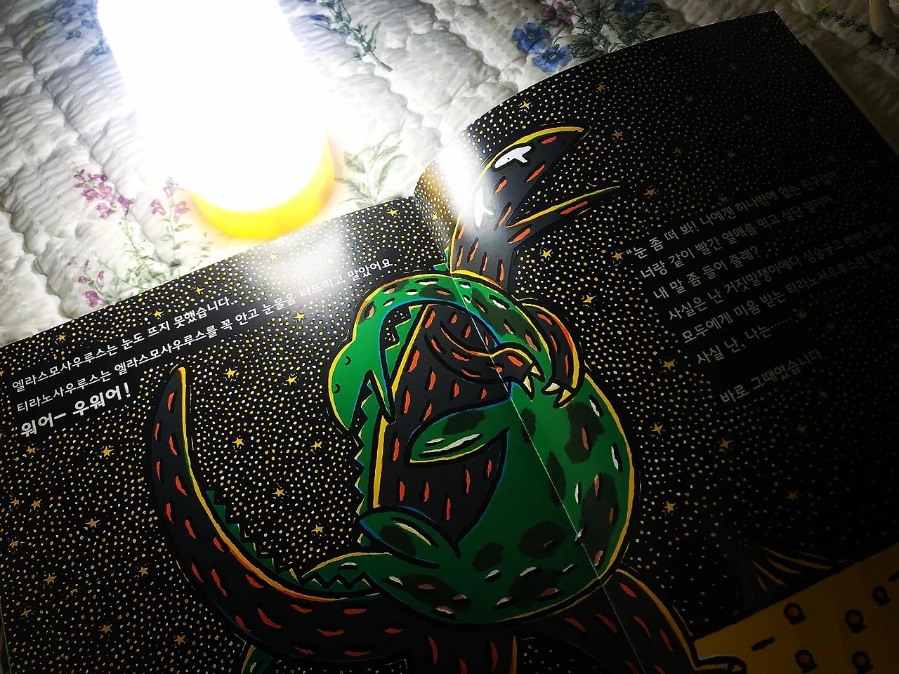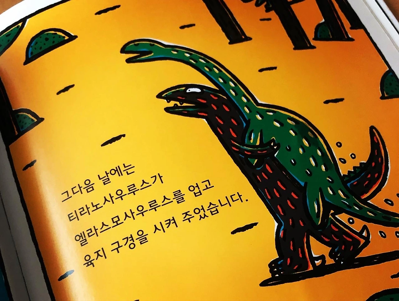 티라노사우루스와 엘라스모사우르스의 우정을 그린 이 동화책을 너무 사랑해서 애착인형마냥 애착책으로 몇년째 오래고 오래고 간직하고 있다