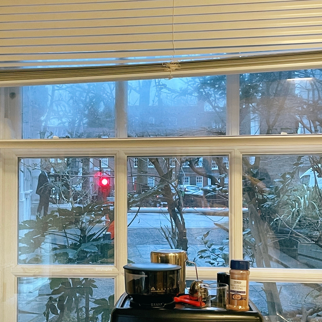 이번 런던 라이프의 첫 아침이라고 할 수 있는, 다시 오지 않을 뜻깊은 순간. 고요한 침묵과 차분한 공기만이 감도는 가운데, 창 밖의 하늘은 짙은 쪽빛에서 맑은 하늘빛으로, 물감통 안의 수채화 물감이 퍼져 나가듯 조금씩 조금씩 물들어가고 있다. 아, 정말이지 뱃속이 간지러워 죽겠다. 물론 기분 좋은 간지러움이다.