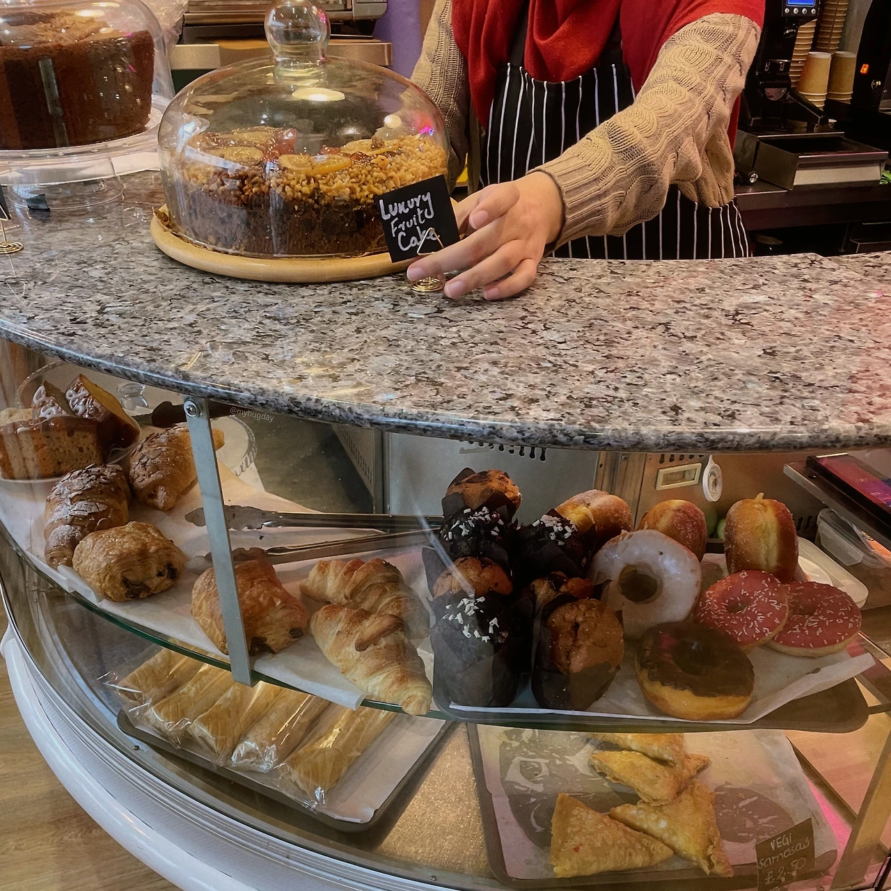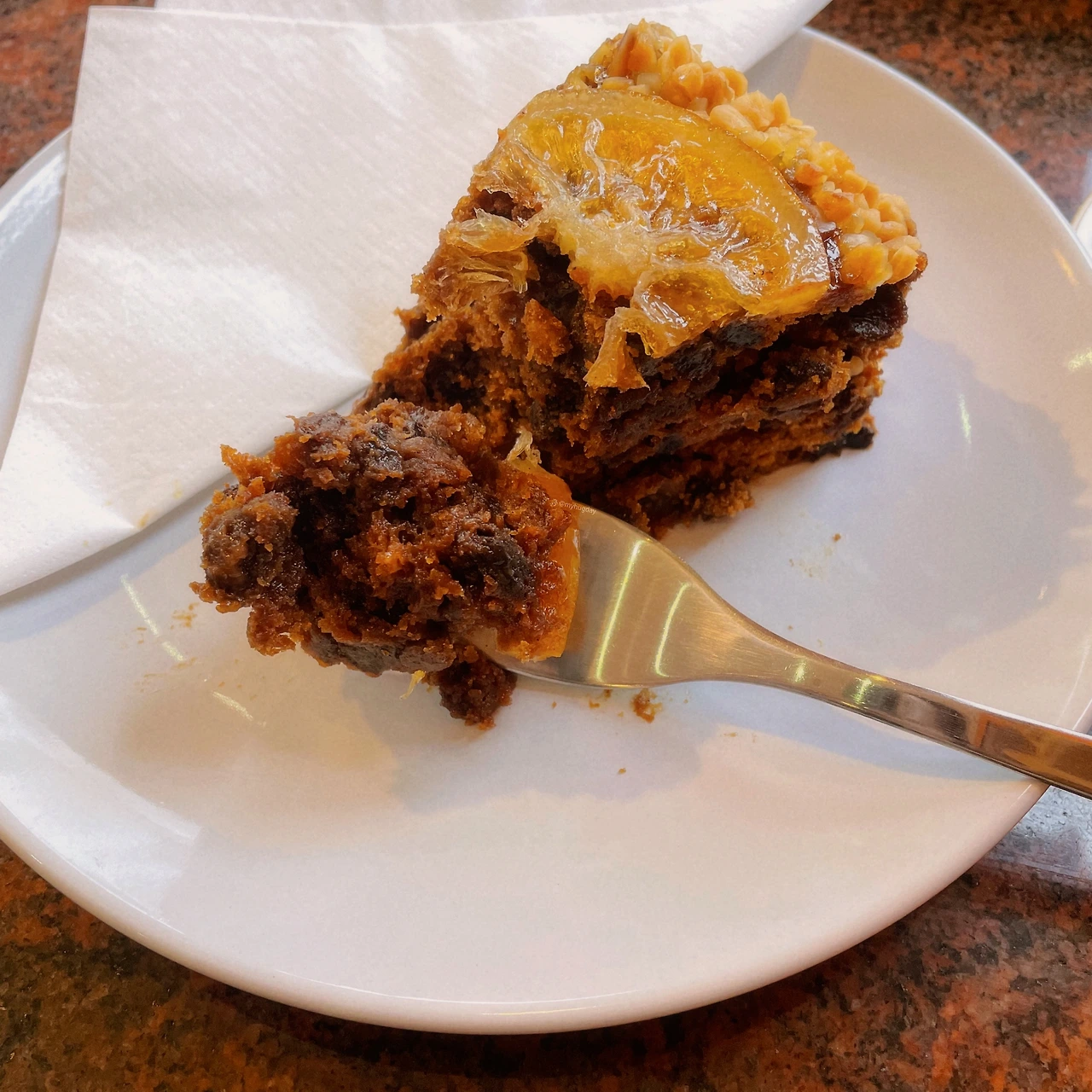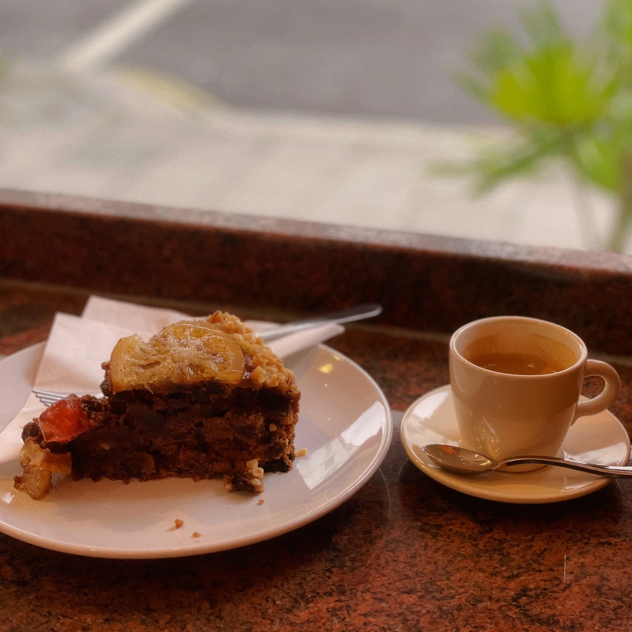 쇼케이스 안에는 다양한 종류의 빵과 케이크들이 있었는데 그중 가장 화려하게 생긴 케이크에 눈길이 갔다. 이름도 Luxury Fruit Cake다. 나는 그 럭셔리 과일 케이크 한 조각과 에스프레소 한 잔을 주문해 받아 들고는 창가 자리에 앉았다. 오, 케이크는 정말이지… 예상을 깨고 매우 당혹스러운 맛을 자랑했다. 케이크 안에 건포도가 한가득이었는데 어느 정도였냐면 케이크를 구성하는 재료의 비율이 밀가루가 9%, 건포도가 91%쯤 되는 것 같았다. 이 정도면 건포도를 쌓기 위해서 밀가루를 바른 수준이라고 할 수 있는 케이크였다. 건포도가 그렇게나 많으니 케이크는 당연히 지독하리만큼 달았다. 아까워서 꾸역꾸역 거의 다 먹었지만 정말이지 이런 케이크를 먹게 될 거라곤 전혀 상상하지 못했다.