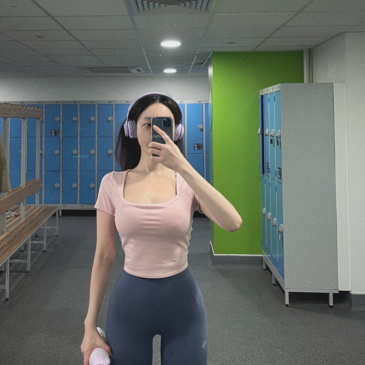 사람들이 운동을 하고 있어서 최대한 사람이 없는 유산소 구역만 조심스레 찍어 보았다. 런던의 가성비 헬스장인 만큼, 최신식 고급 운동기구들은 없지만 전문 운동인이 아닌 일반인들이 일상적으로 운동하는 데 필요한 기구들은 거의 다 갖추고 있다. 나의 경우 헬스는 문외한인 왕초보인지라 이 정도 기구면 충분하게 느껴졌다. 여자용 탈의실 거울 앞에서 아무도 없을 때 사진도 한 장 남겼다. 나의 첫 런던 Gym 인증샷!