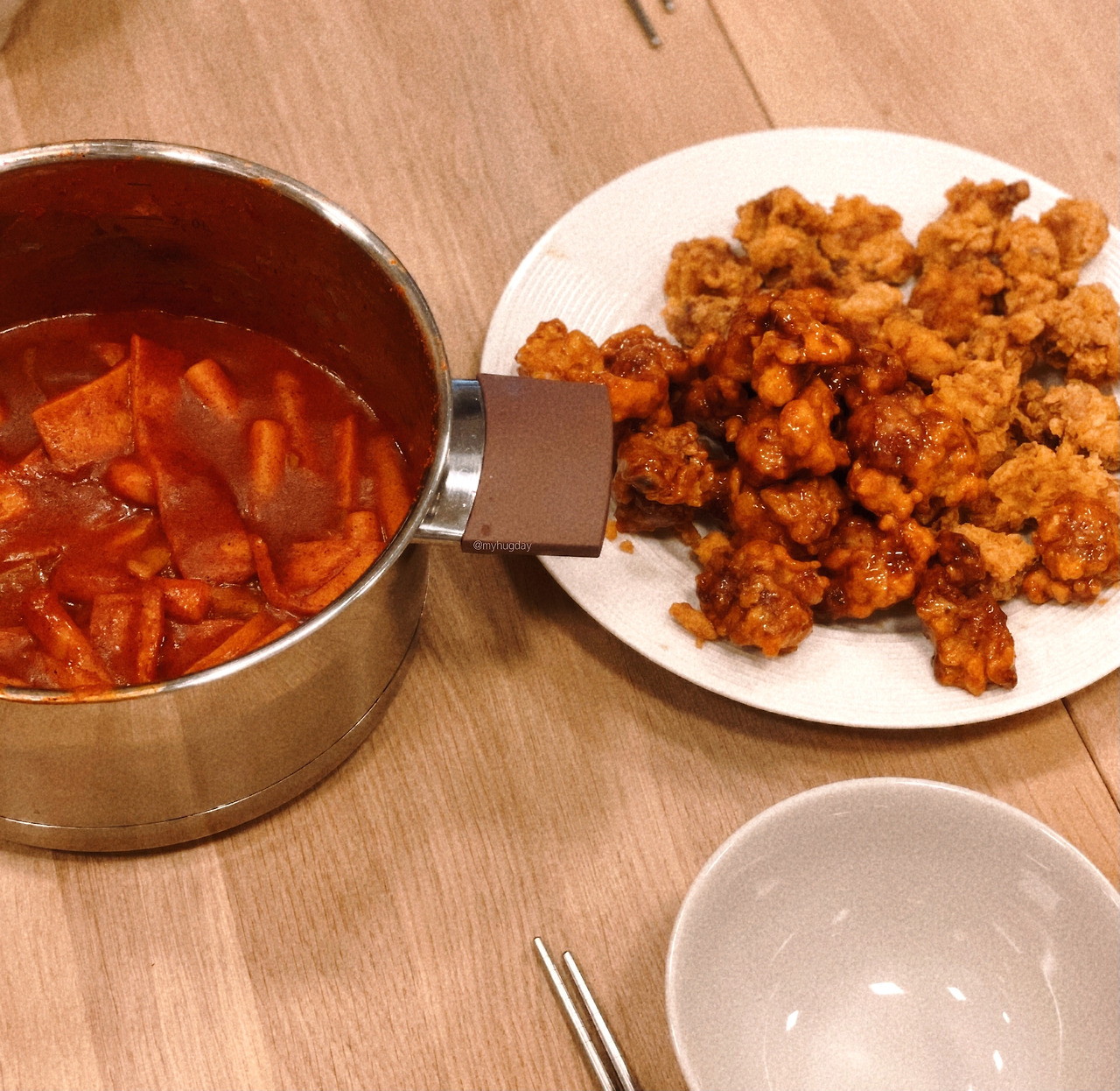 저녁으로 라면, 떡볶이, 치킨 삼합 그리고 화이트와인까지! 아주 호사스러운 식사를 했다. 런던에 와서 굶기는커녕 어째 포식만 하고 있는 것 같다. 금전 사정이 여유롭지 않아 강제 다이어트가 될 거라고 기대한 것이 무색하도록 너무나 잘 먹고 다니고 있다.