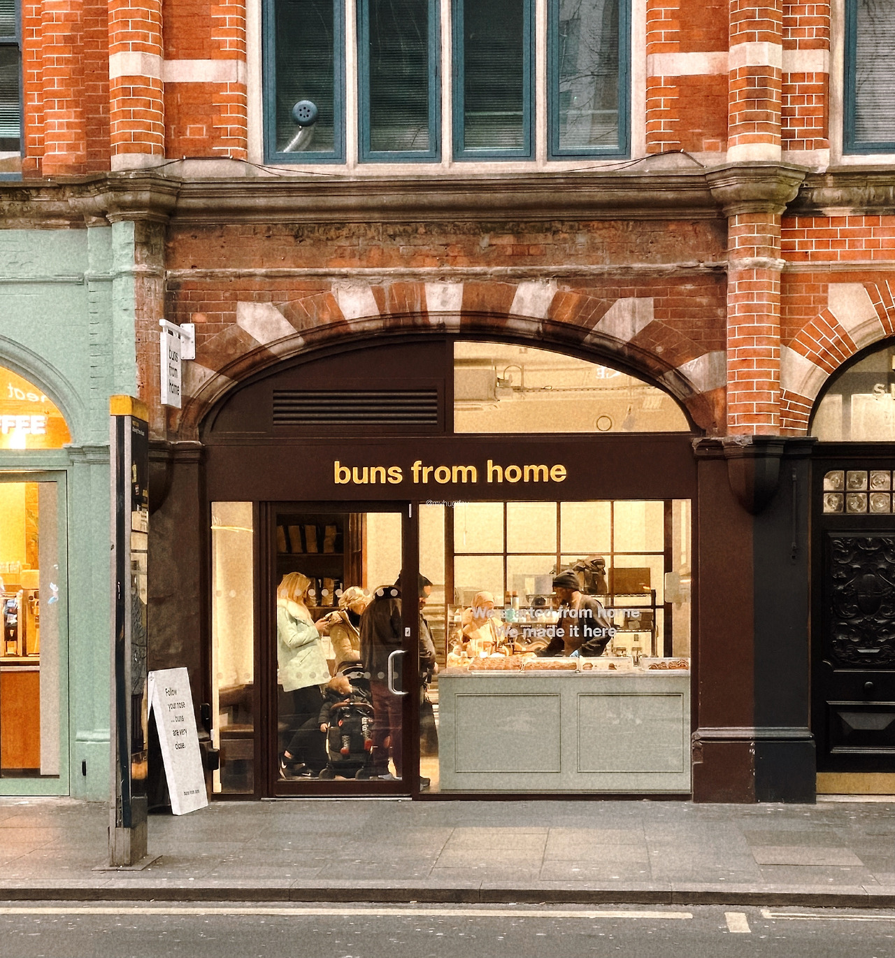 소호에서 무사히 옷 구입을 마치고 전부터 점찍어뒀던 'Buns from home'에 방문했다. 이곳은 달콤한 페이스트리(pastry)를 판매하는 제과점으로, 상호명만 보면 bun(부드러운 둥근 빵)을 팔 것 같지만 실제로는 시나몬 롤과 비슷한 부류의 페이스트리만을 판매하고 있다. 지나가다 보면 항상 사람들의 발길이 끊이지 않으니 런던 현지인들 사이에서도 꽤 인기 있는 베이커리인 것 같았다.