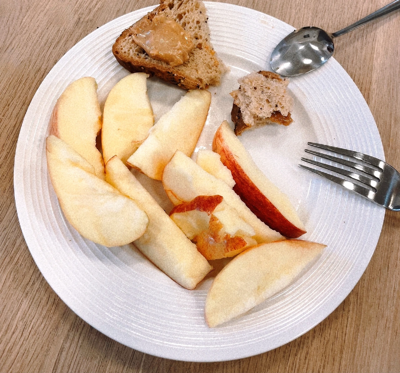 그렇게 먹고 나서도 건강을 위해 과일을 챙겨 먹는다는 이유를 핑계 삼아 땅콩버터와 빵을 곁들이는 나.