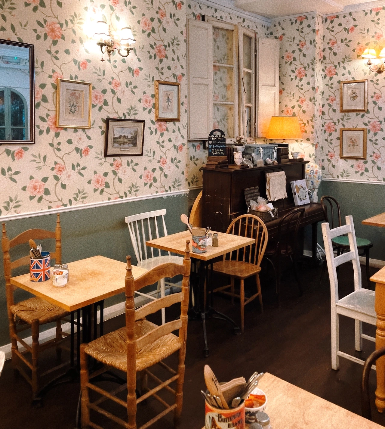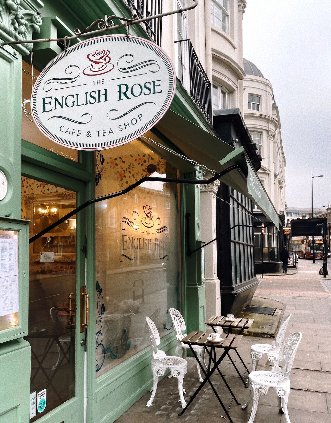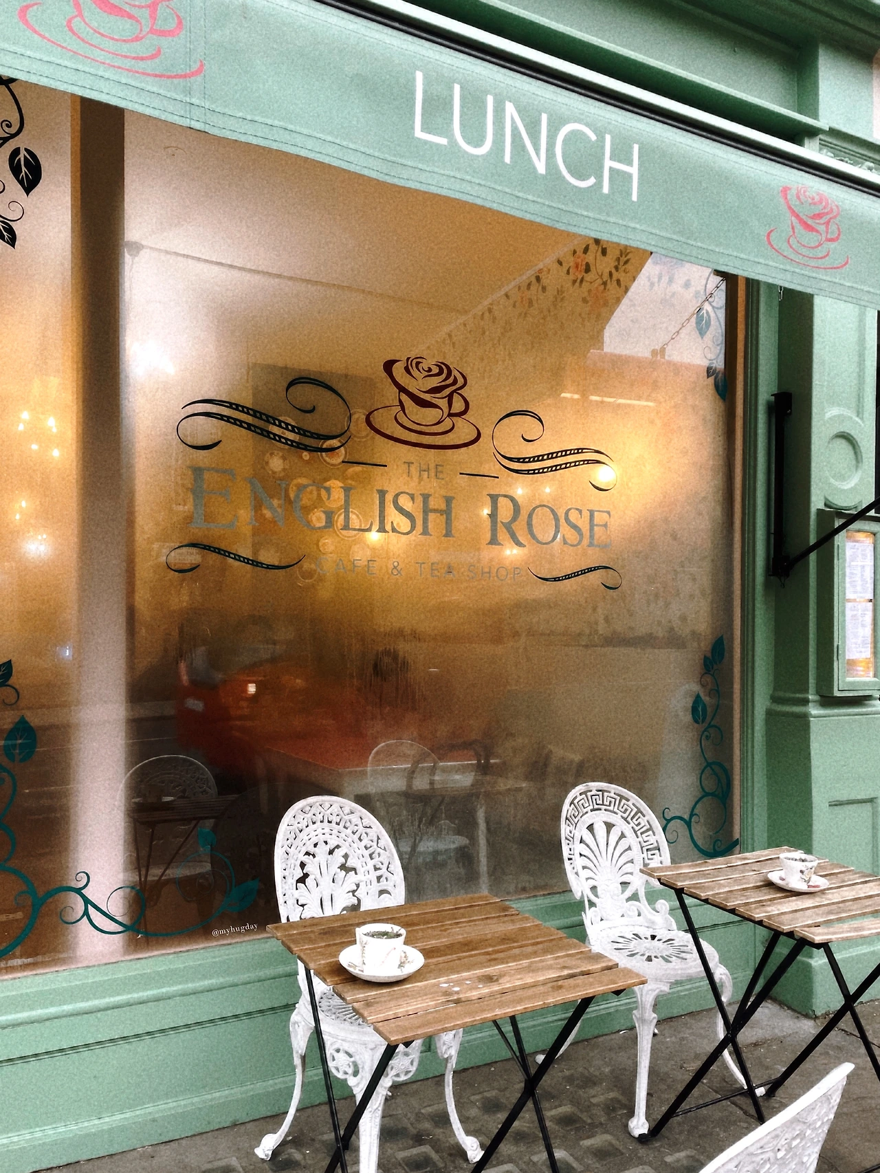 또 봐도 참 개성 있고 예쁜 나뭇잎색의 카페다. 이름도 어쩜 (좀 올드하긴 하지만) English Rose인지, 장미를 좋아하는 나에겐 상호명마저도 취향에 꼭 맞는 카페다.