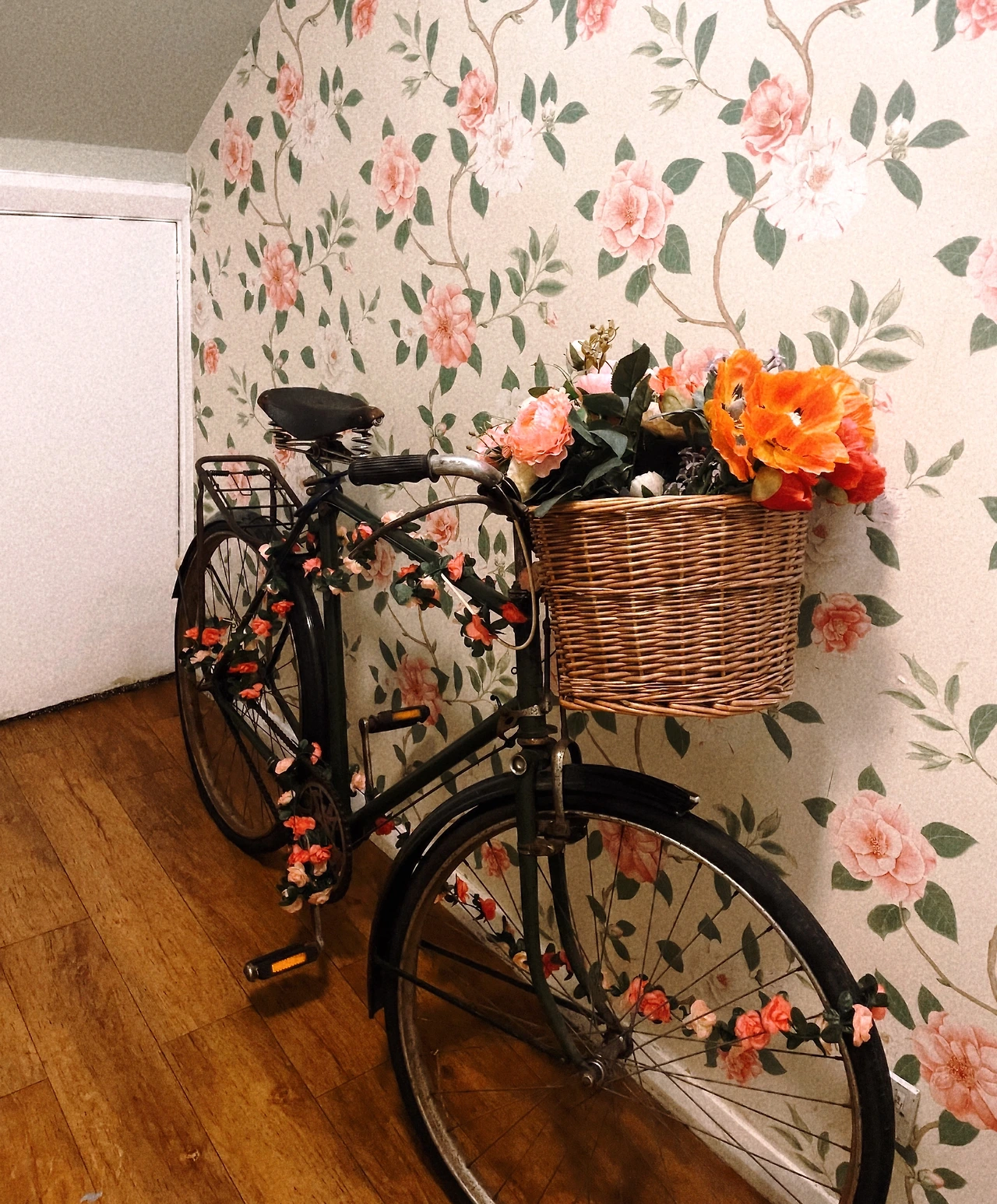 나가기 전에 화장실에 들렀는데 어쩜 화장실도 참 귀엽고 사랑스럽게 꾸며놨다. "어머! 저 귀여운 자전거는 뭐야~~" 하면서 사진을 찍지 않을 수 없었다. 물론 내 사진도 한 장 찍었다. 히히