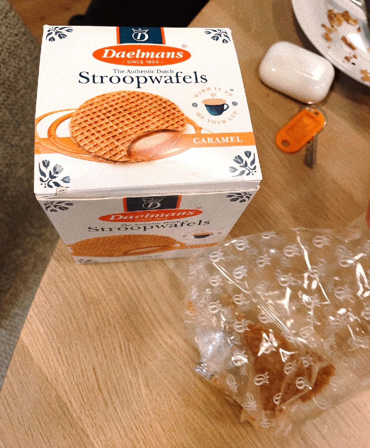 운동하고 돌아와 먹은 과자 'Stroopwafels'. 한국에서도 흔히 보이는 토피넥과 같은 종류의 과자라고 보면 되는데 토피넥보다 이게 더 맛있다. 하지만 달기도 더 달아서 많이 먹으면 건강에 무진장 해로울 것 같다.